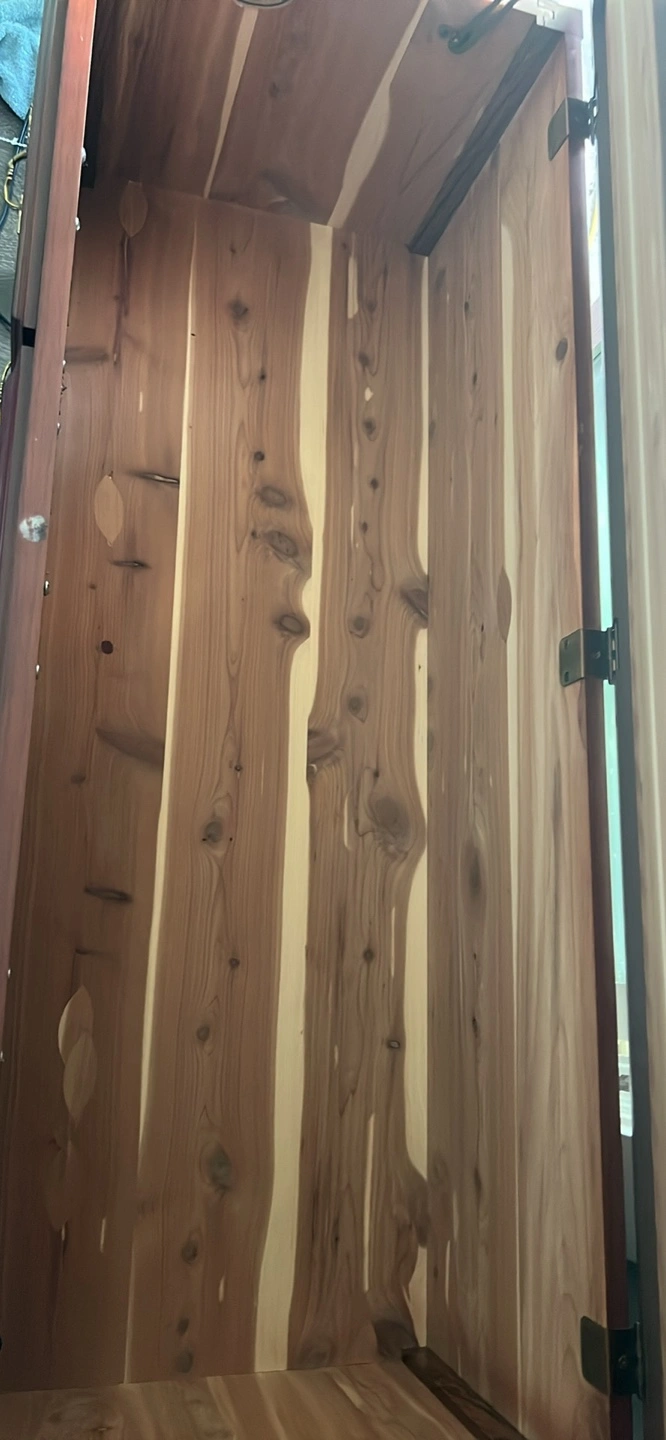 The interior is lined with cedar wood.