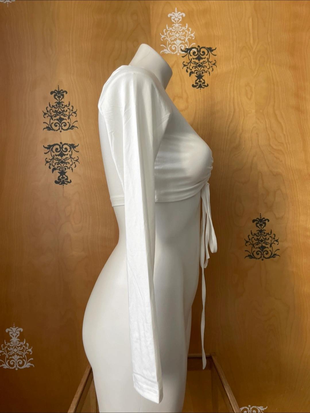 Vintage 2000s Y2K White Front Tie Up Long Sleeve Crop Top Small/Medium