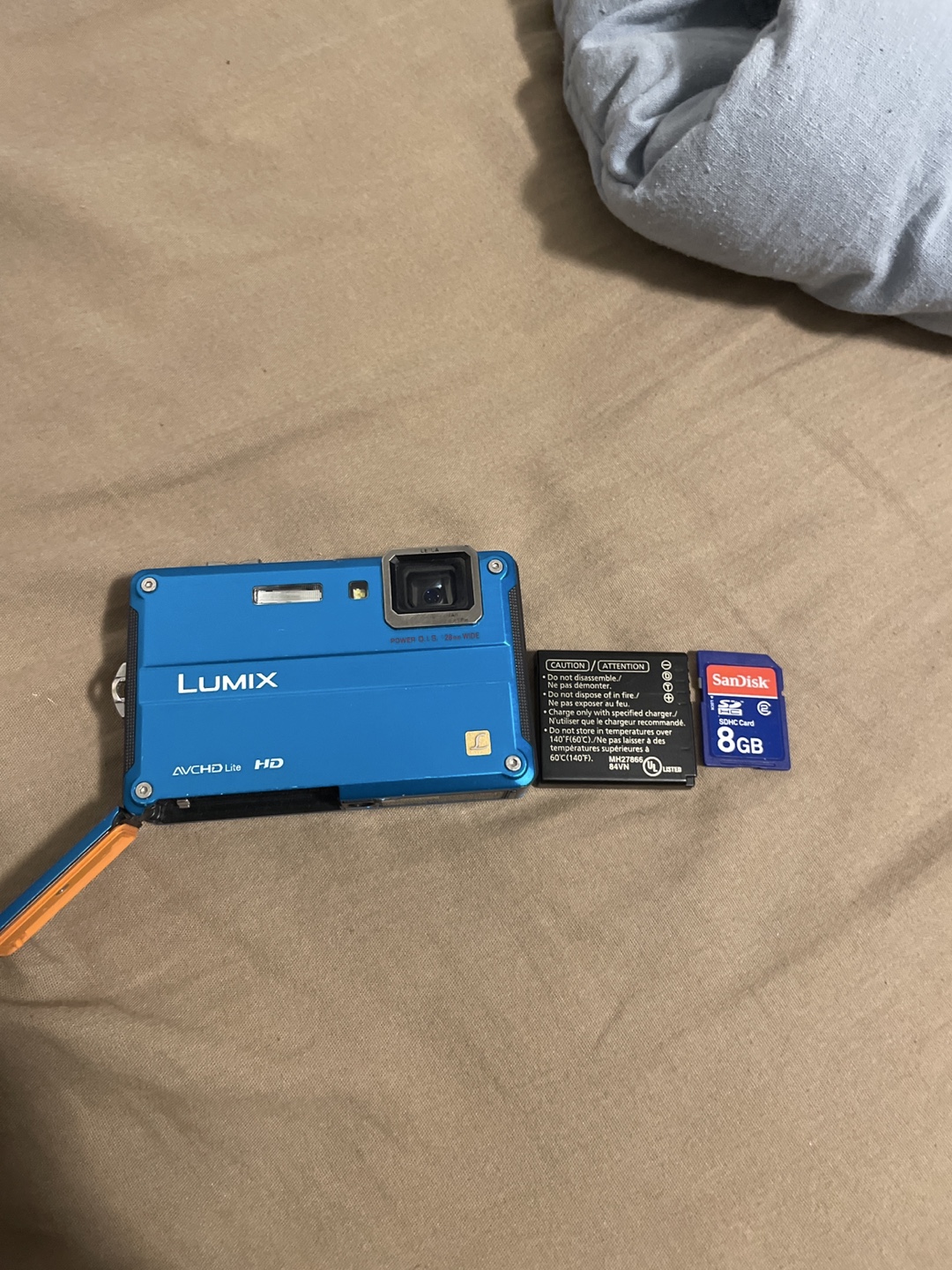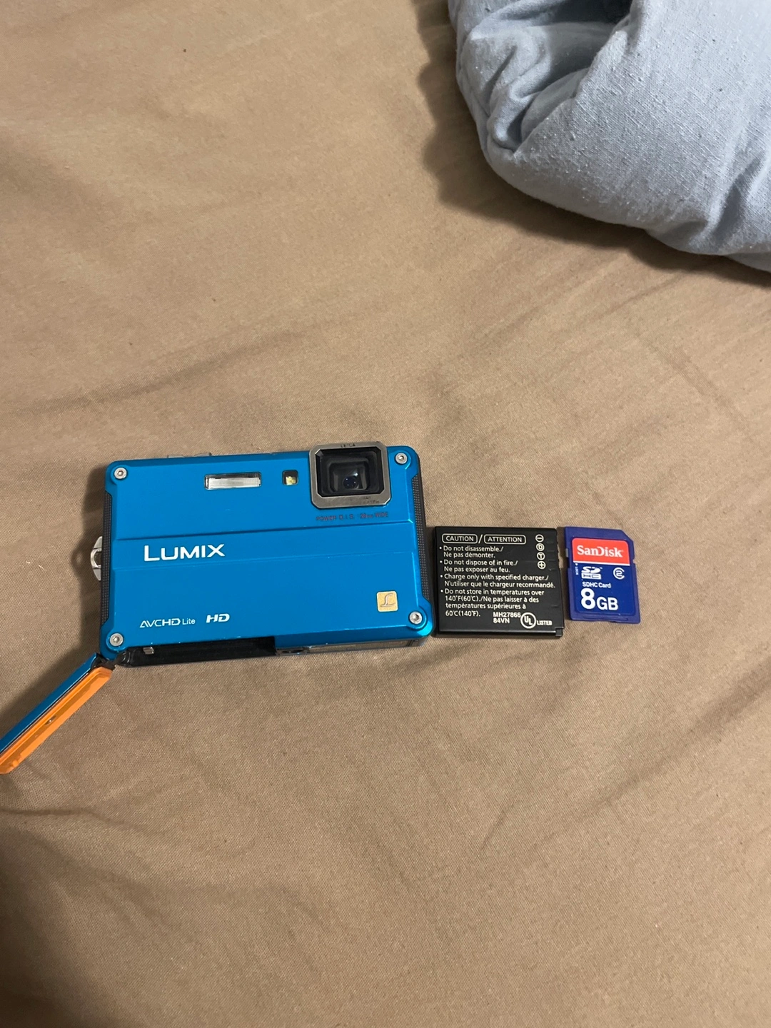Selling a Lumix DMC-FT20 digital camera in blue! It's waterproof up to 10m/33ft and shockproof to 2m/6.6ft, making it perfect for outdoor adventures. It also comes with an 8GB SanDisk SD card so you can start snapping photos right away!