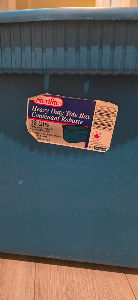 Selling a Sterilite heavy-duty tote box. It's a sturdy 38-litre container, received from my buy-nothing group for help when I moved and now passing it along