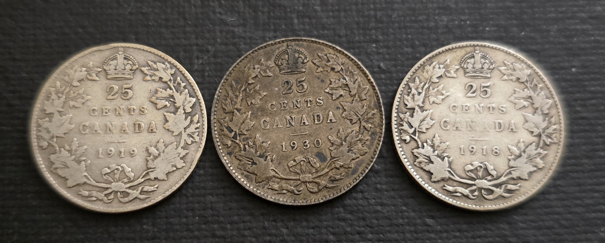 1 / 21 / 2Buy & SellVintage silver Canadian 25 Cent CoinsVintage silver Canadian 25 Cent Coins$55Vintage silver Canadian 25 cent coins for sale. They are dated 1918, 1919, and 1930. They would make a great addition to any coin collection!WHERE TO MEET4 silver maple crtView MapSELLERverifiedJoshuaBramalea21715 reviews1 chats·0 favorites·71 viewsSEND CHAT TO SELLERHi Joshua! I’m interested in your listing.Hi Joshua! I’m interested in your listing.Get the Karrot app to chatSign In to chat