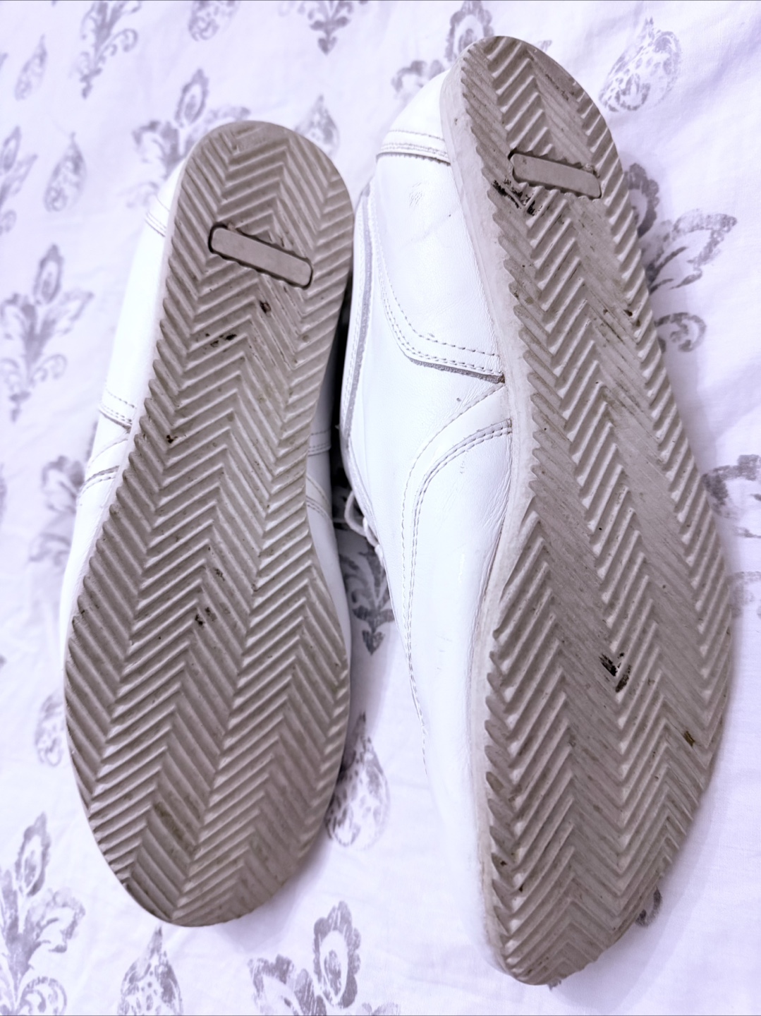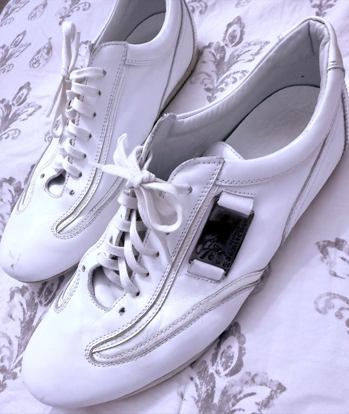 Selling a pair of Versace Collection white leather sneakers! They're in used condition, as you can see from the soles, but still have lots of life left in them. Stylish and comfortable, these sneakers will add a touch of luxury to your everyday look