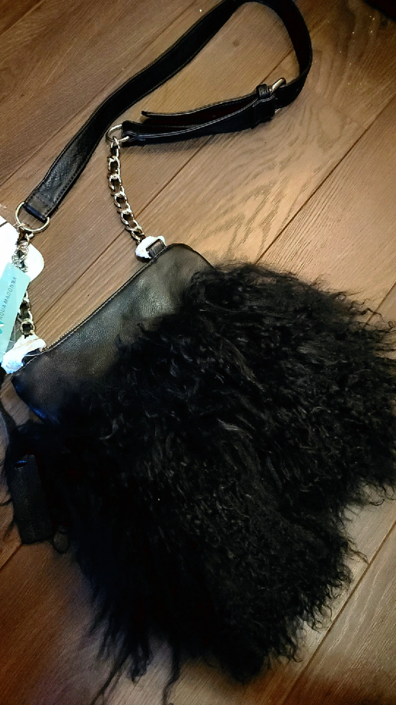 Selling a stylish Aqua Madonna bag! It features gorgeous super soft plush Mongolian lamb fur with leather trim.