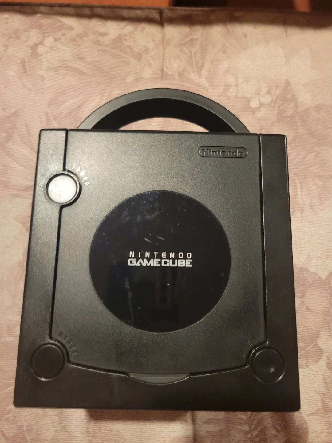 Selling black Nintendo Gamecube with 3 controllers and wires. Blue and transparent controllers have button jamming issues. Black controller works well. Otherwise in good condition. Price negotiable.
