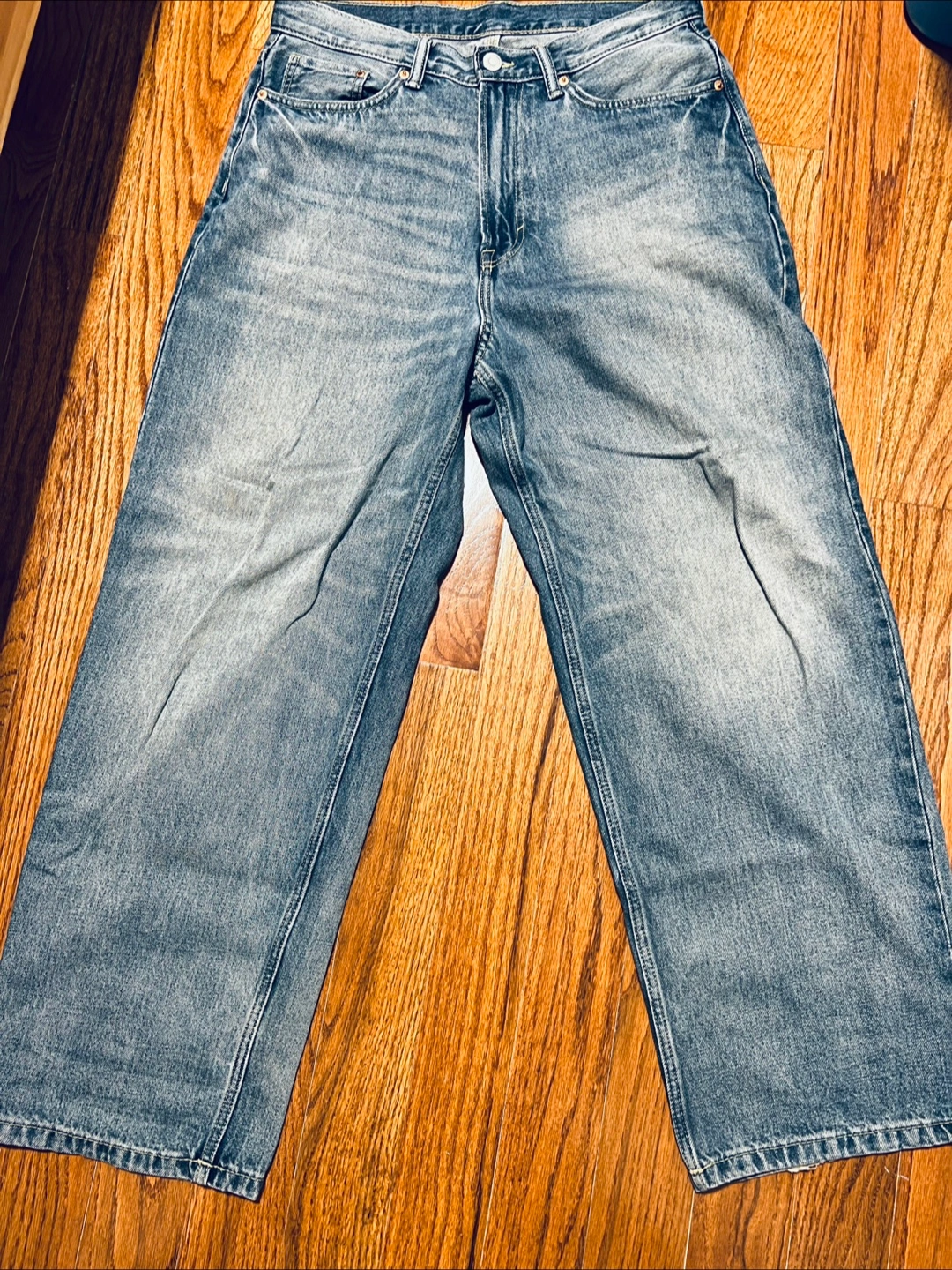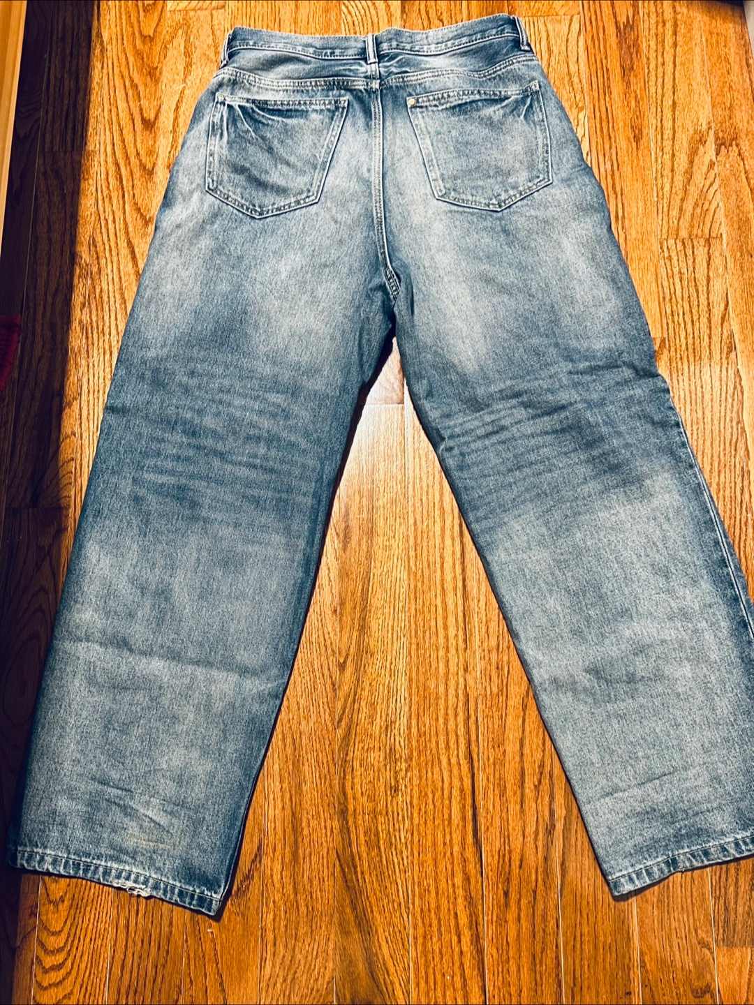 These are baggy h&m jeans. They're in good condition and ready for a new home! They're a stylish and comfortable choice for everyday wear. Feel free to message me if you're interested!