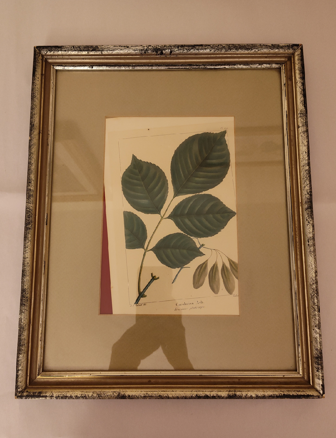Two framed prints . The botanical one is askew but can be fixed. Both come with matted frames and glass. Botanical one is 15.5" tall and 12.5" wide. The other print is 15" tall by 12" wide