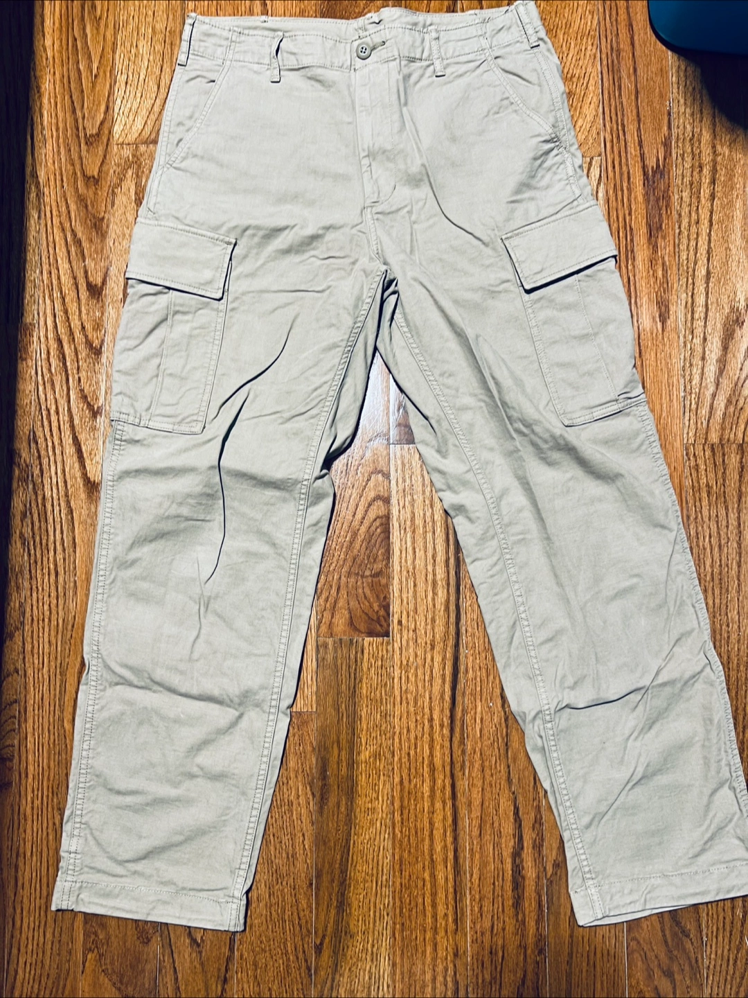 These Uniqlo cargo pants are in great condition and ready for a new home! They're a stylish and practical choice for everyday wear. The beige colour makes them easy to match with any outfit. Perfect for running errands or just relaxing on the weekend