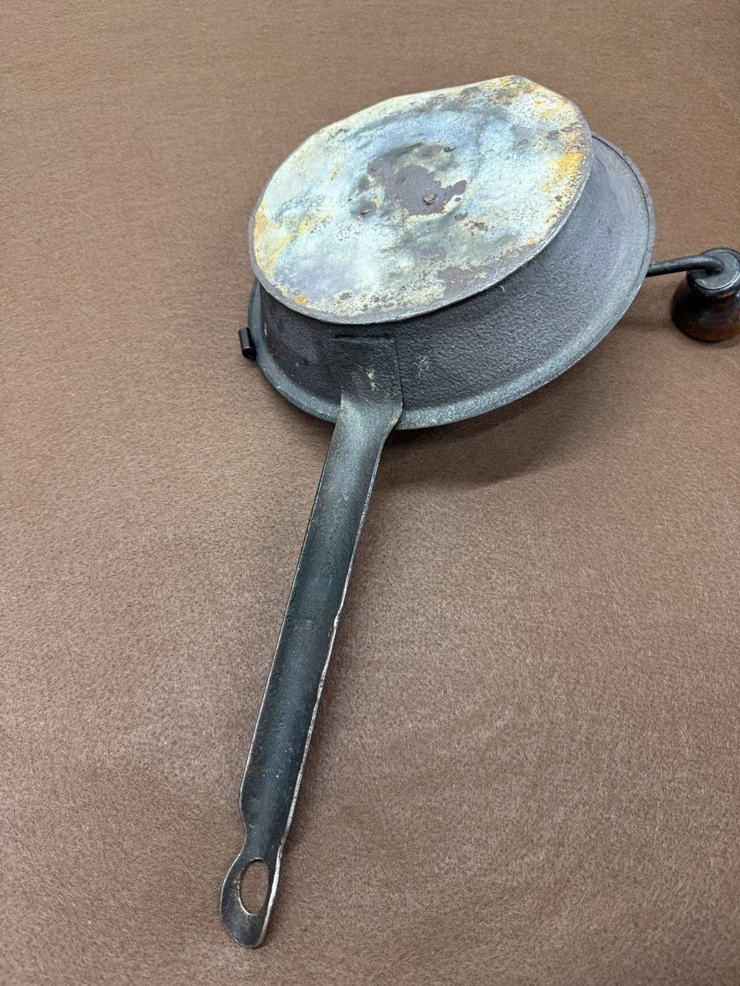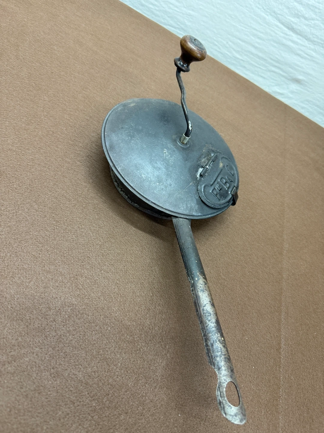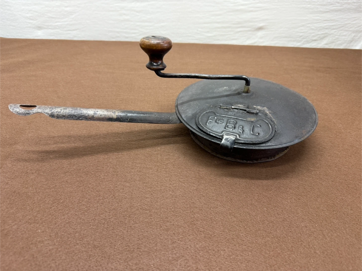 Antioque Iron Hand Crank Chestnut Roaster Nut Roasting Coffee Bean Vintage F.B.&C. Antioque Iron Hand Crank Chestnut Roaster Nut Roasting Coffee Bean