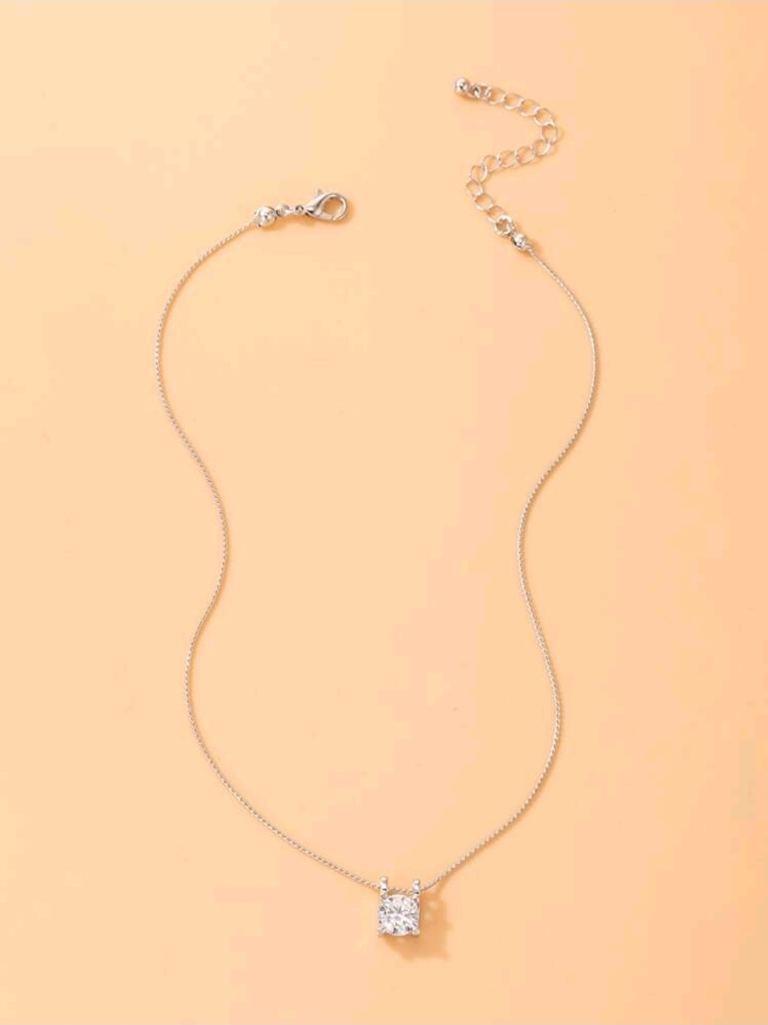 A cute silver-tone necklace featuring a rhinestone pendant! It's brand new and ready to add a little sparkle to your outfit