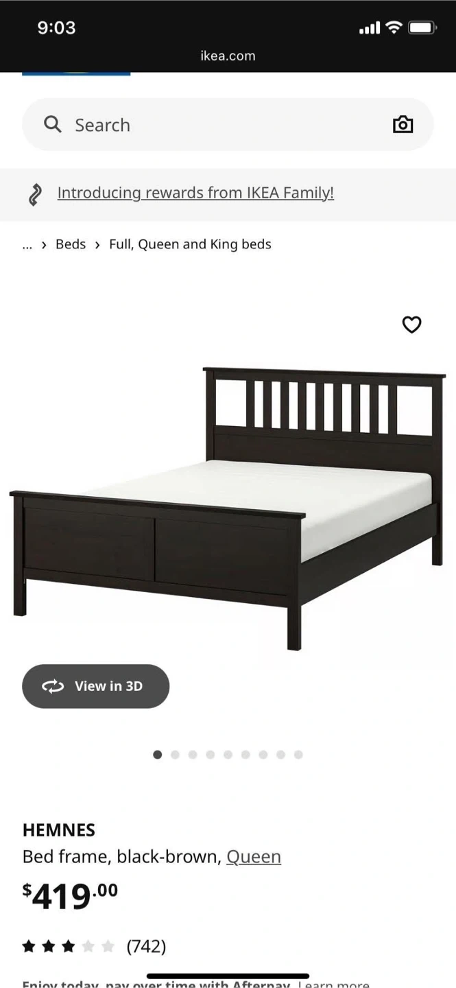 Selling an IKEA Hemnes bed frame in black-brown, queen size! It's in great shape and ready for a new home. This bed frame is super sturdy and stylish, perfect for any bedroom setup. Originally bought for $419