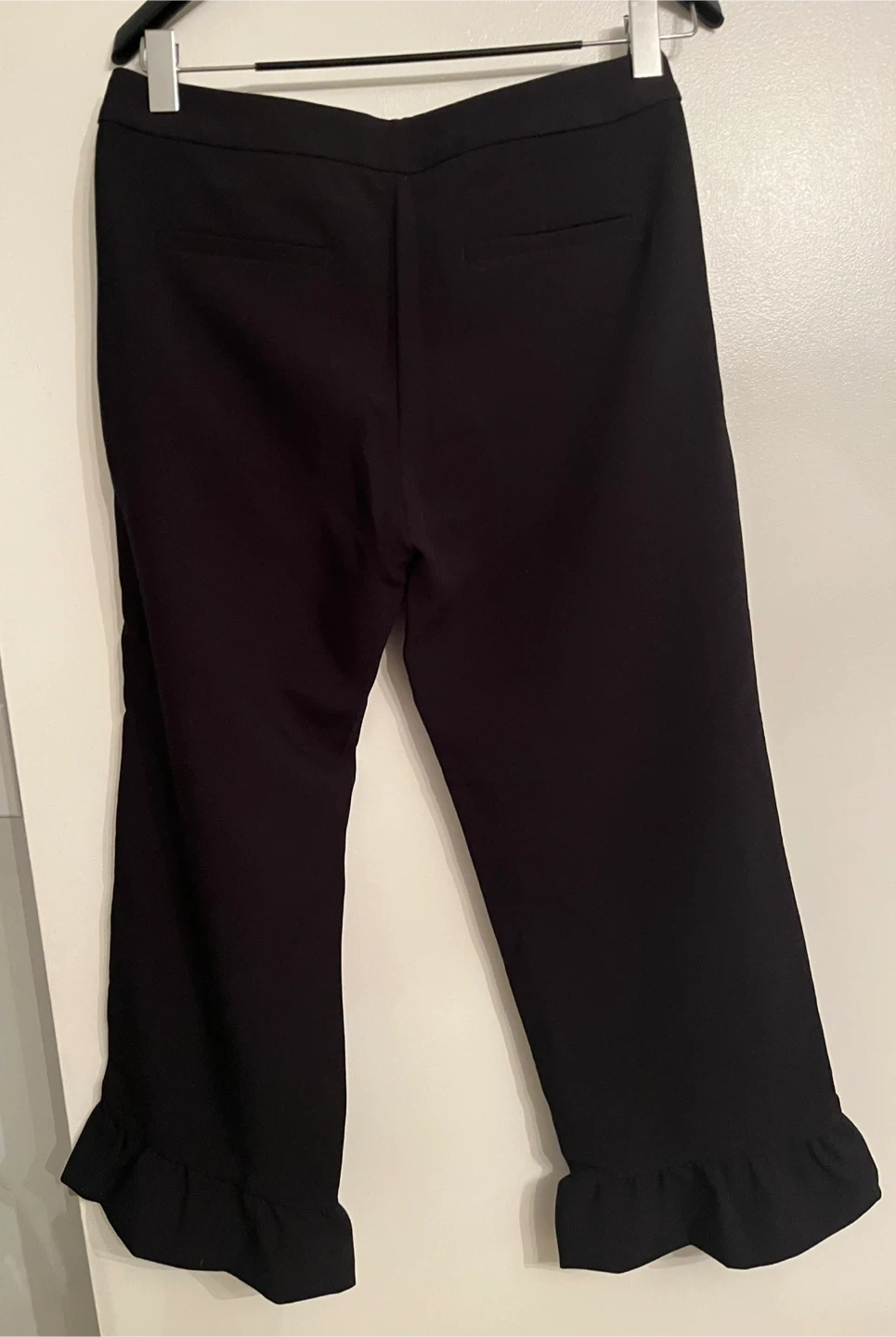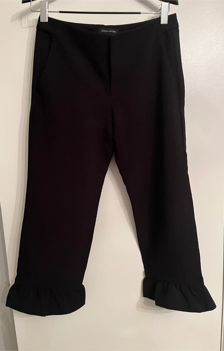 Banana Republic black trousers with ruffle hem and side pockets.