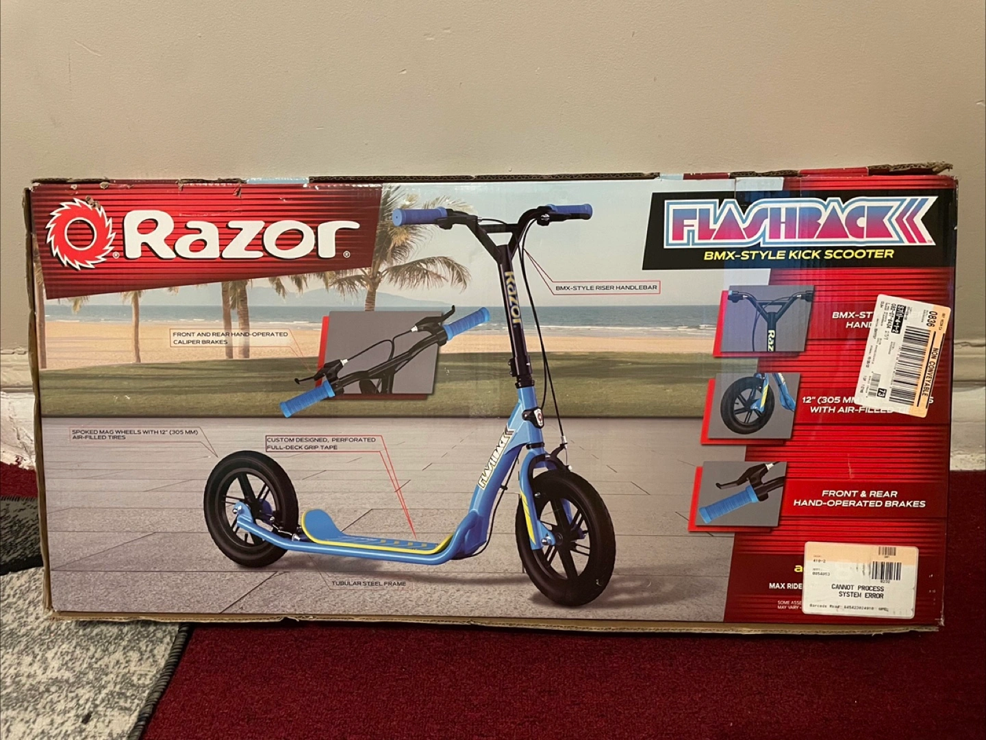 Not in the box….Selling a Razor Flashback BMX-style kick scooter! It features: