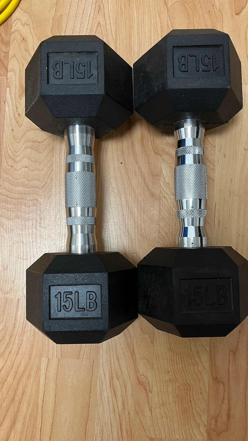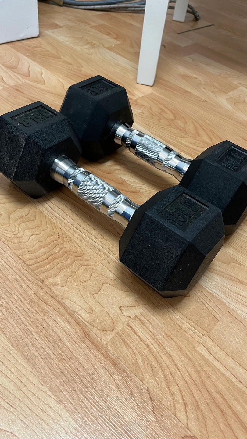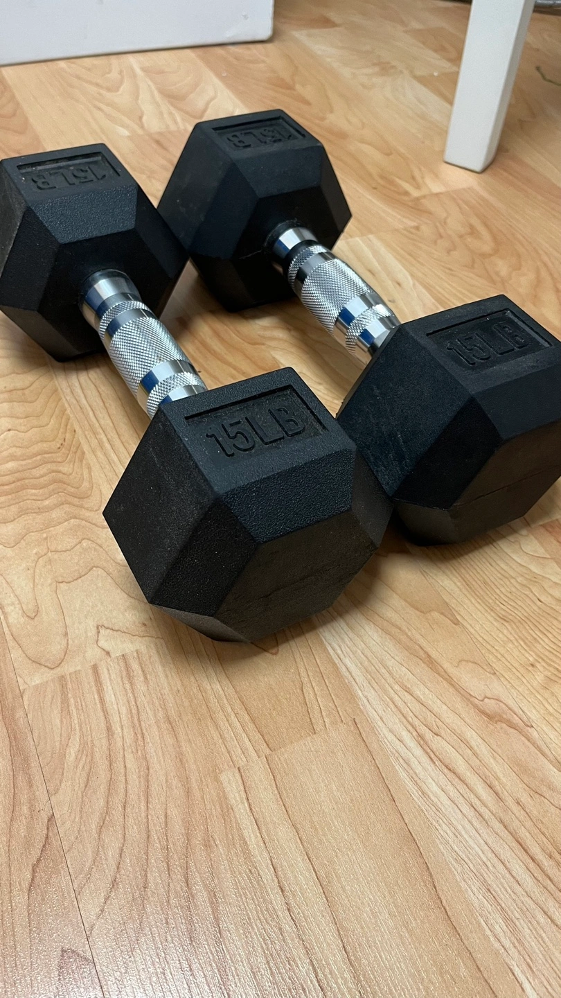 Buy & SellPair of 15lb Hex DumbbellsPair of 15lb Hex Dumbbells$47Selling a pair of 15lb hex dumbbells. They're in great shape and ready for your home workouts!ConditionGoodWHERE TO MEETLansdowneView MapSELLERNataliWallace Emerson17418 reviews0 chats·0 favorites·13 viewsSEND CHAT TO SELLERHi Natali! I’m interested in your listing.Hi Natali! I’m interested in your listing.Get the Karrot app to chatSign In to chat