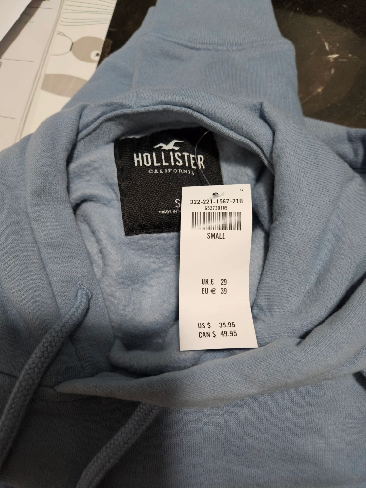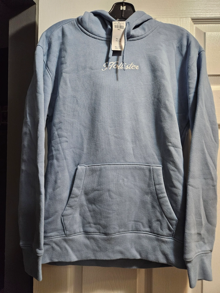 Selling a brand new Hollister hoodie in a lovely light blue colour! It's a size small and still has the tags on it. It's super comfy and perfect for layering!