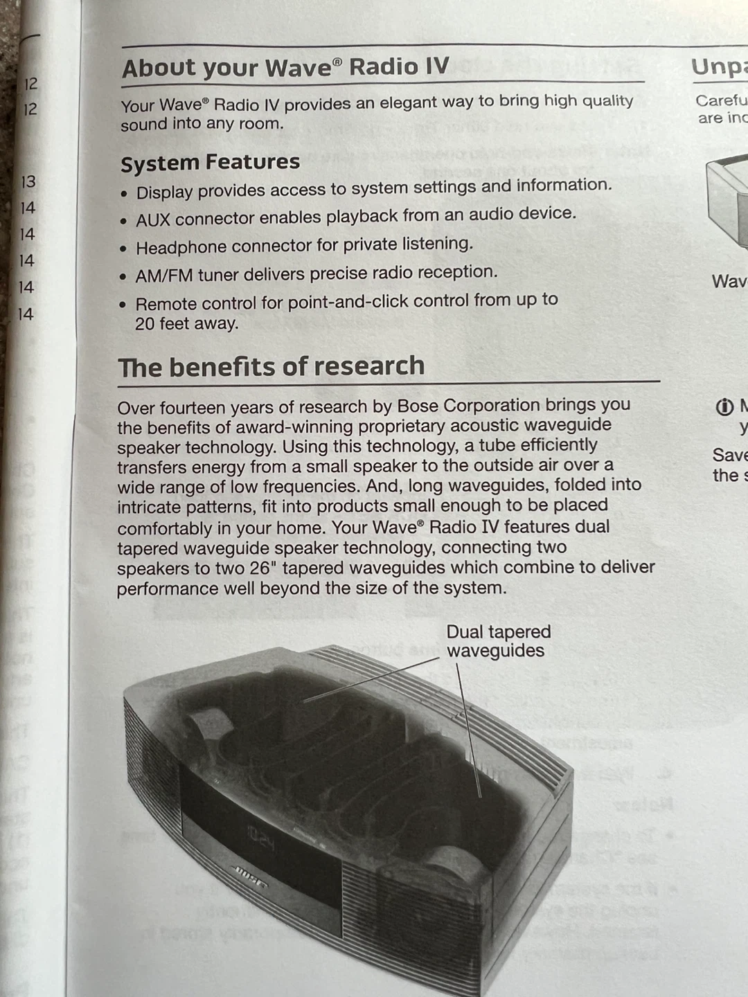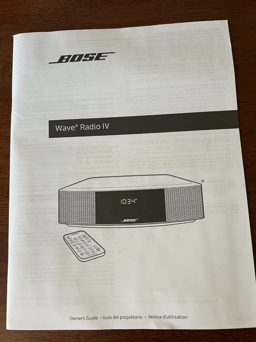 Selling A New Silver Bose Wave Radio IV. Key features include: - Display provides access to system settings and information - AUX connector enables playback from an audio device - Headphone connector for private listening - AM/FM tuner delivers precise radio reception - Remote control for point-and-click control from up to 20 feet away