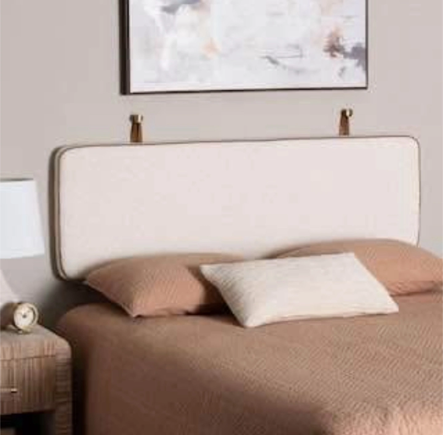 New White Boucle Fabric Queen Size Wall-Mounted Headboard