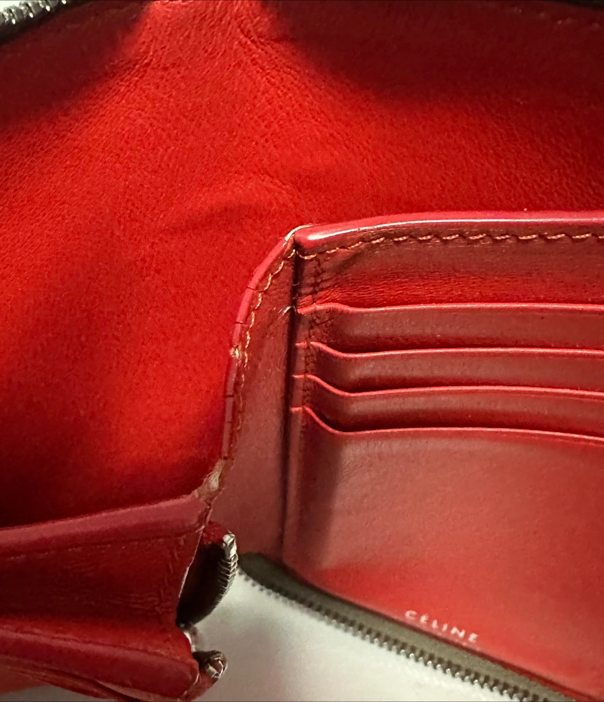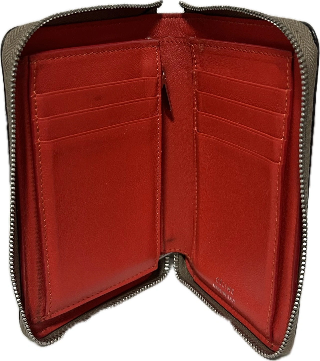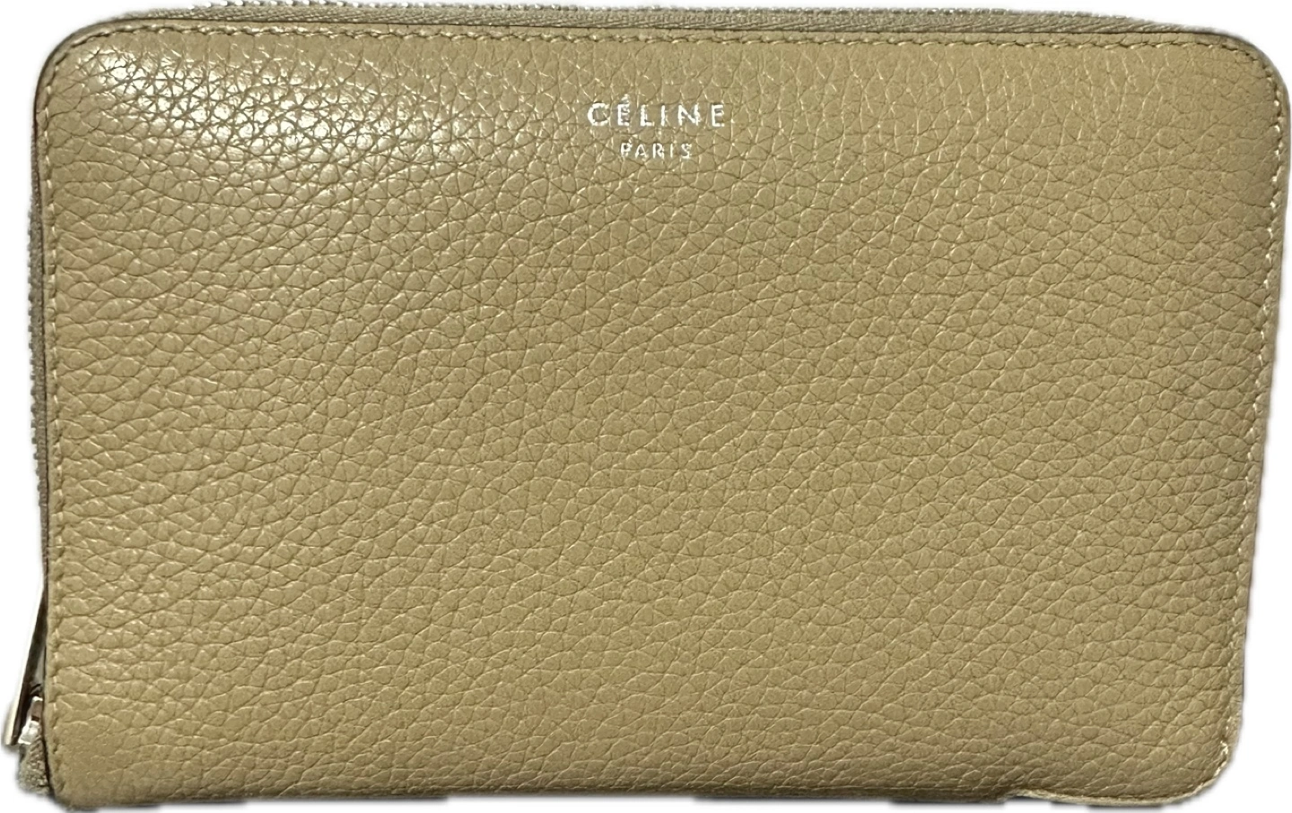 Authentic Celine Drummed Calfskin Zip Around Wallet | Beige