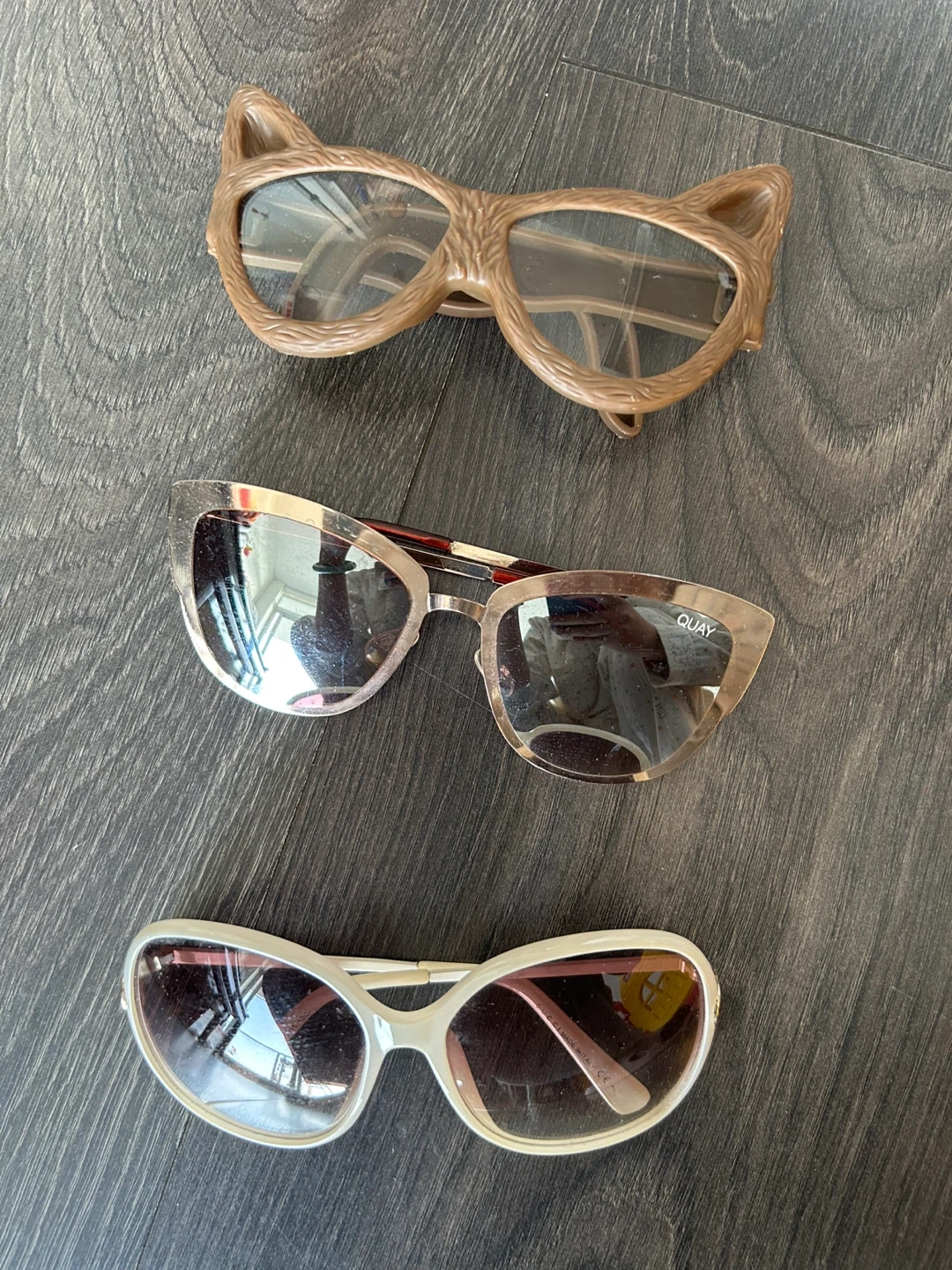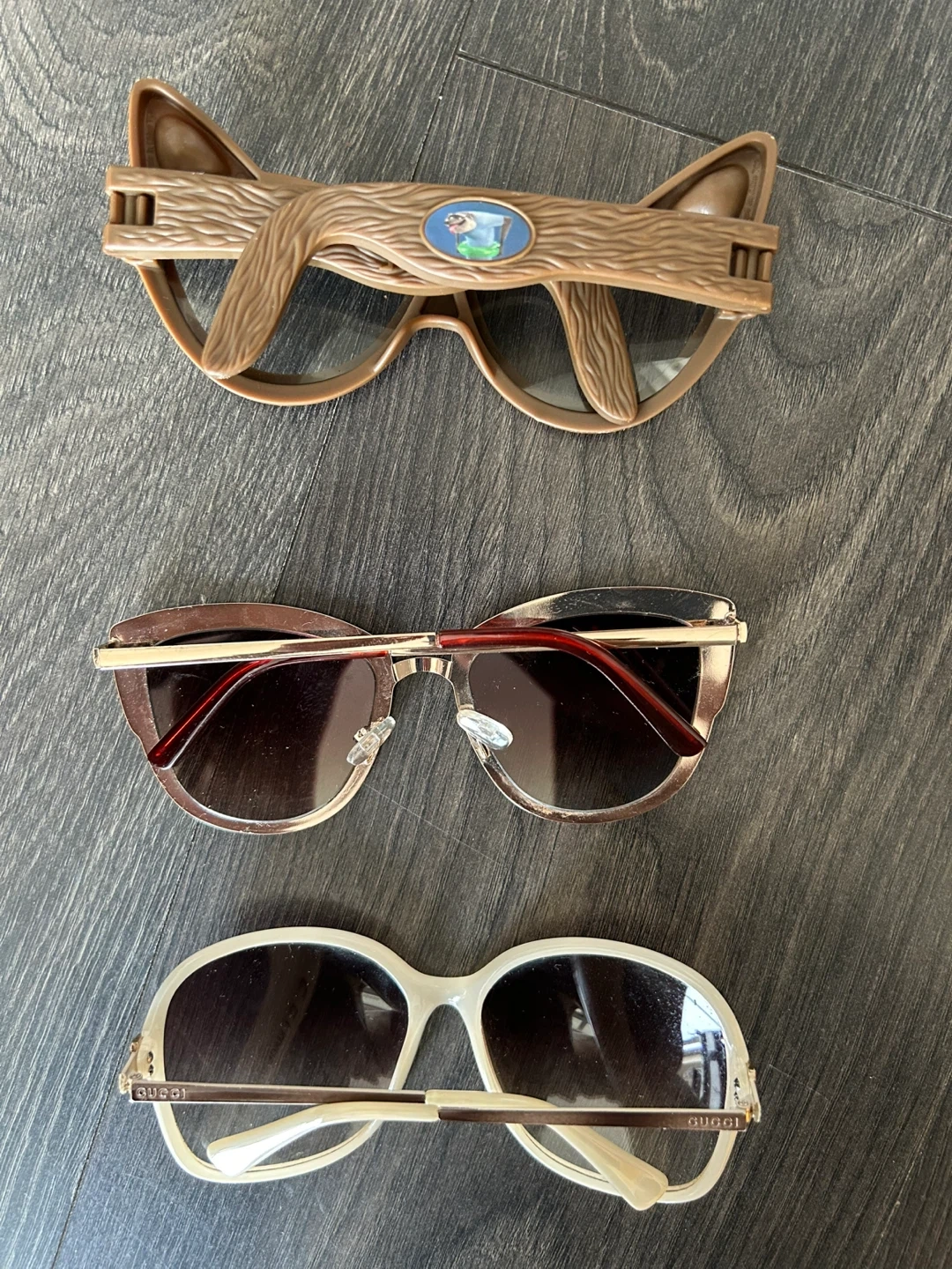 Selling a brand new three pairs of sunglasses! Included one pair of Gucci sunglasses and one pair of Quay sunglasses.