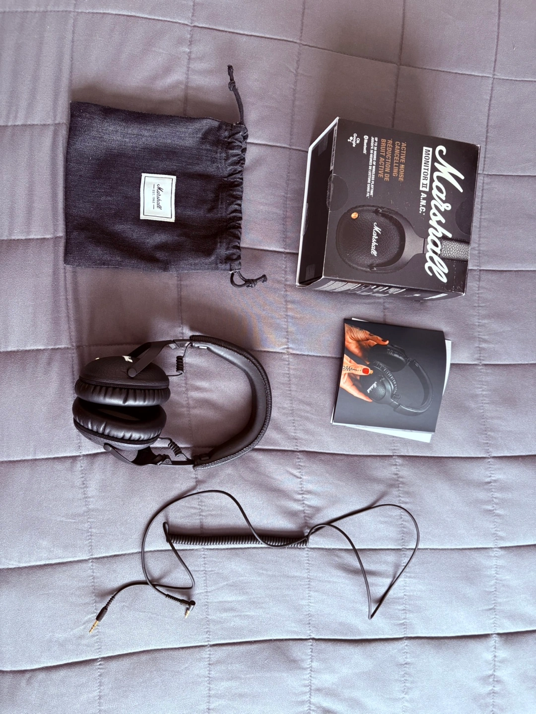 Selling a pair of Marshall Monitor II ANC headphones in black. These are in excellent condition and come with the original box, carrying pouch, and cable. I used them couple times only sense I got them. They feature active noise cancelling for a great listening experience!