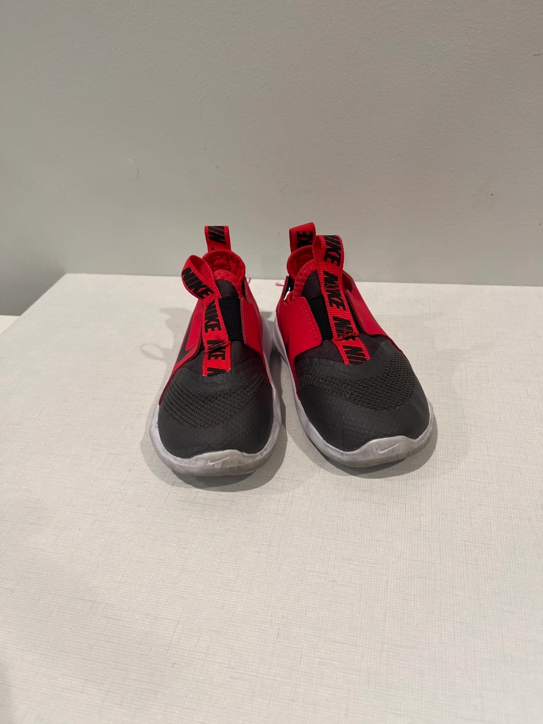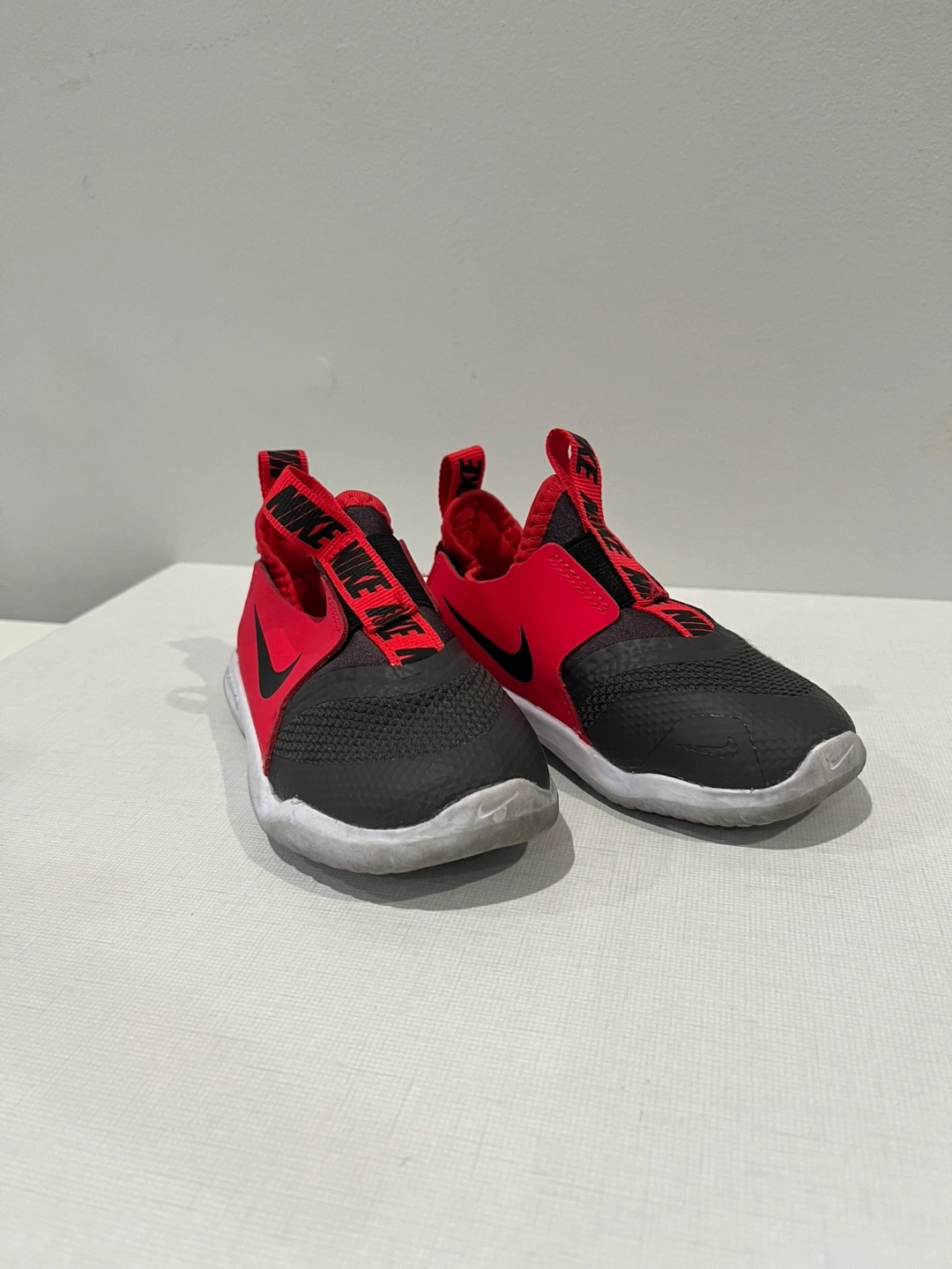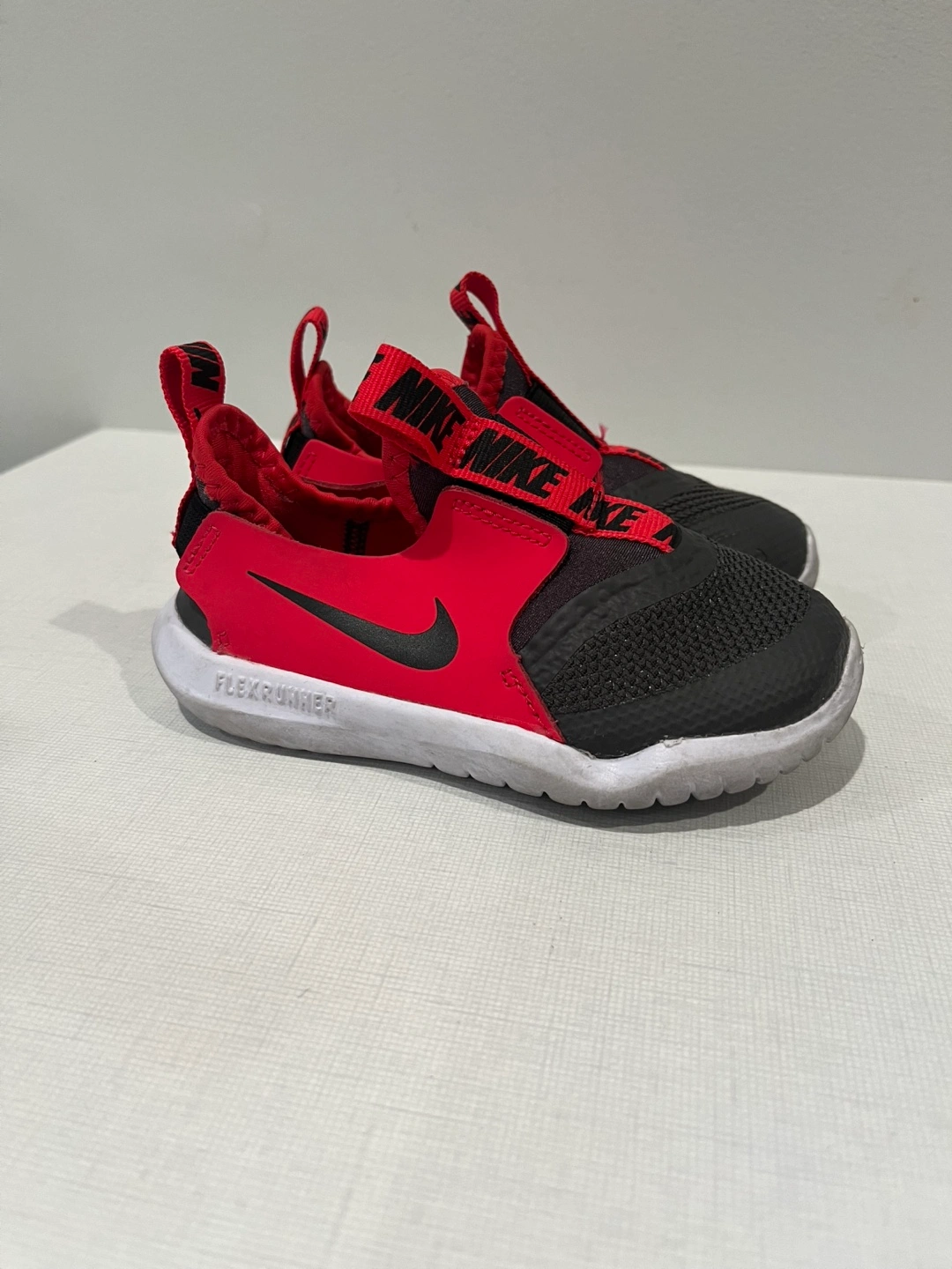 Selling a pair of Nike Flex Runner kids' shoes in red and black. They're in great condition and ready for a new owner! Size is 8c.