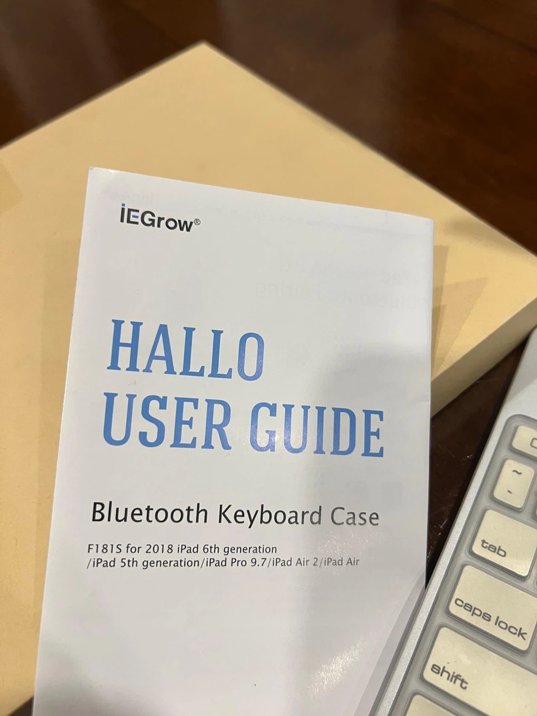 Selling an iEGrow Hallo Bluetooth Keyboard Case. It's compatible with the iPad 6th generation, iPad 5th generation, iPad Pro 9.7, iPad Air 2, and iPad Air. The keyboard case is silver and comes with the user guide and the original box!