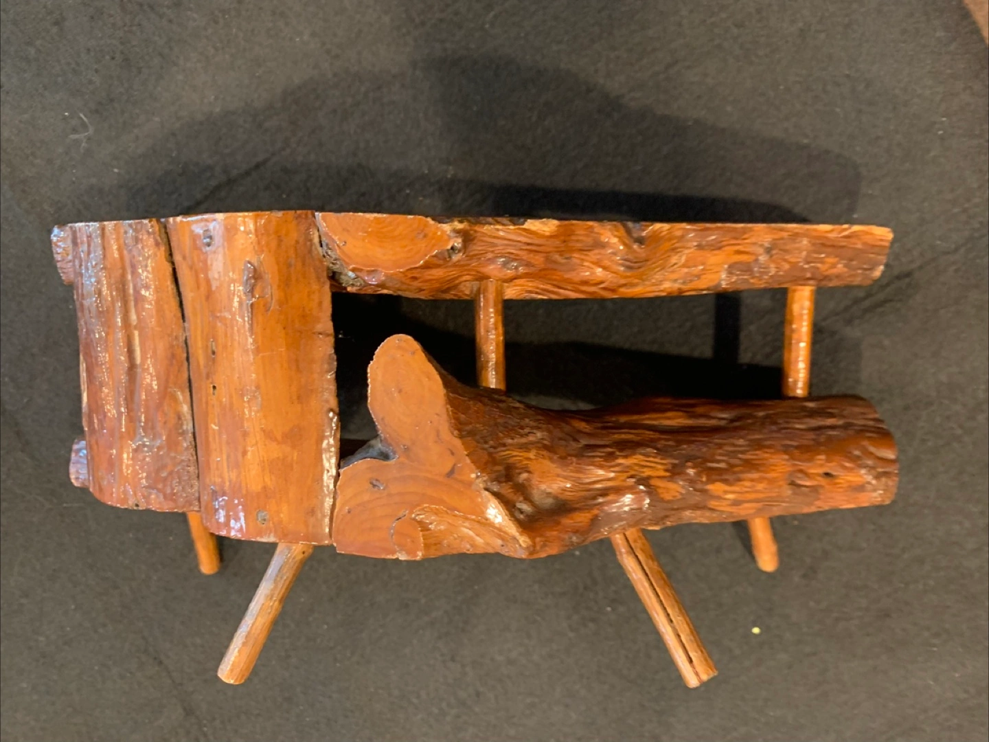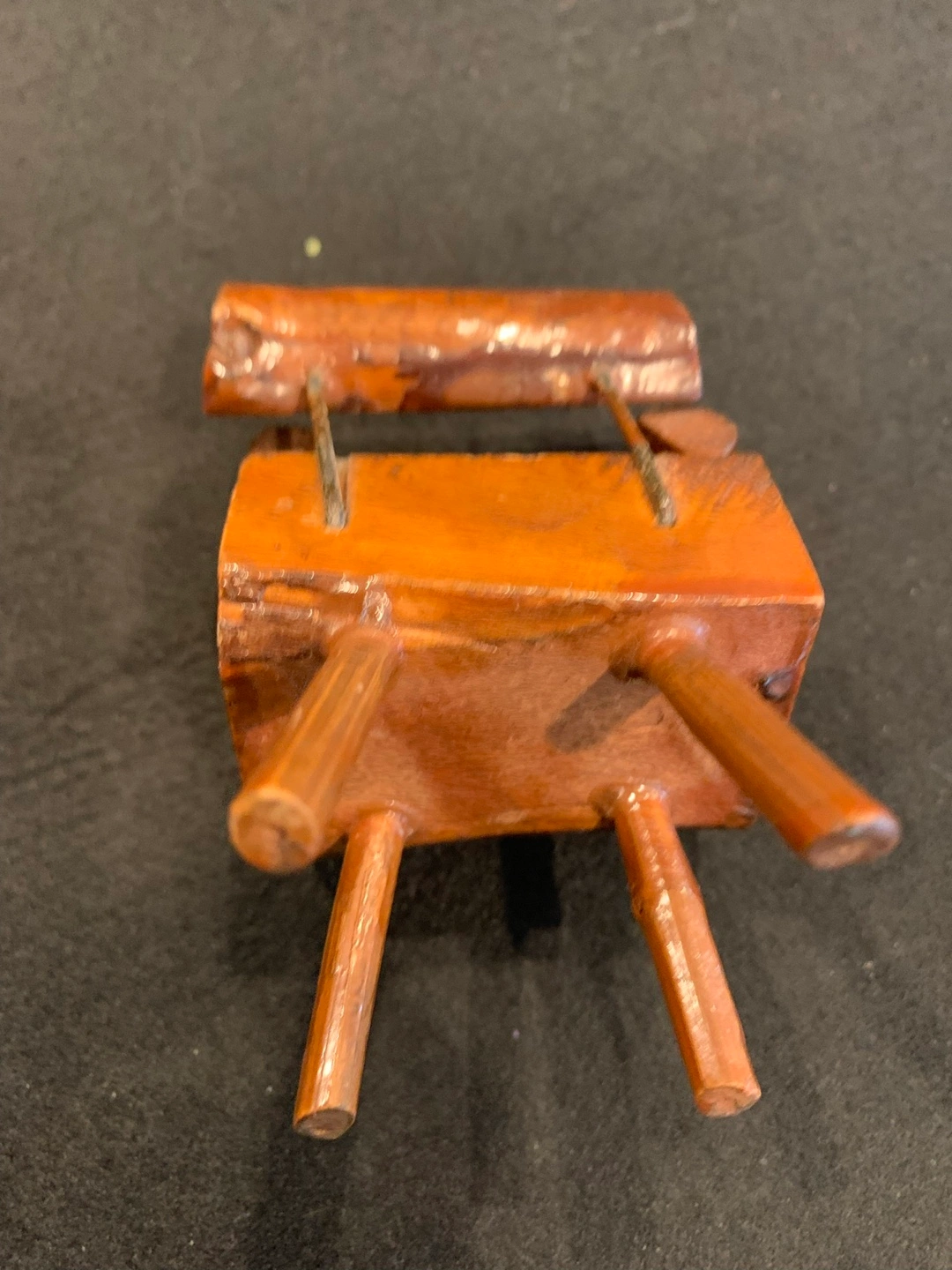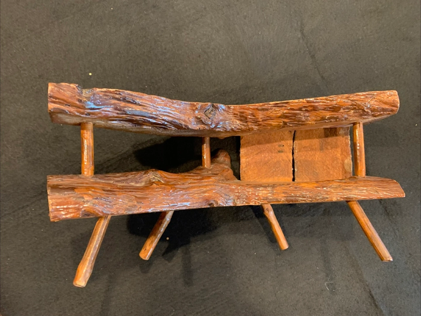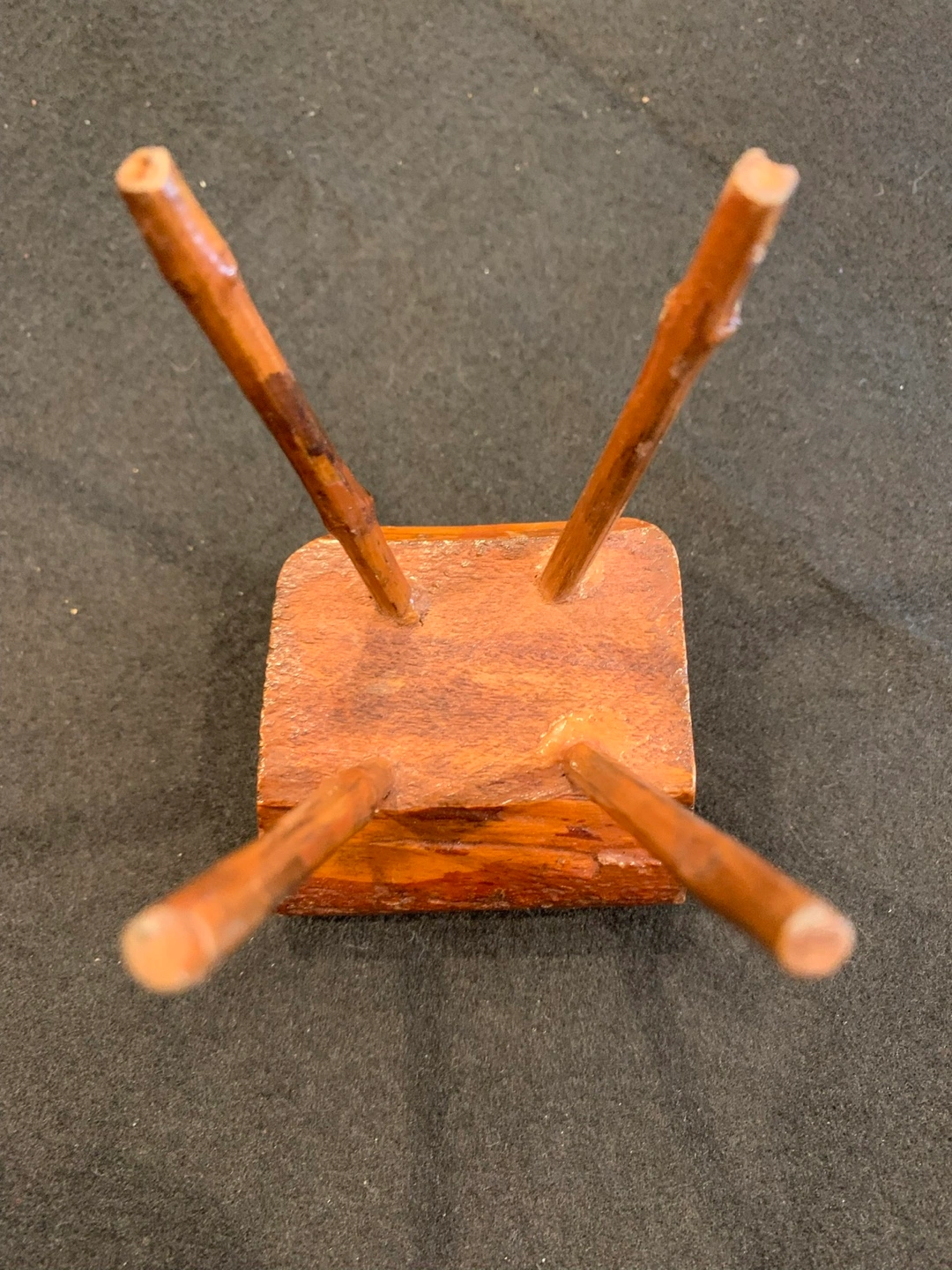 This is a cute set of miniature wooden furniture in a style of George Nakashima, includes chairs, a table, and a bench. The set is in good condition and would be a great addition to any dollhouse or miniature collection