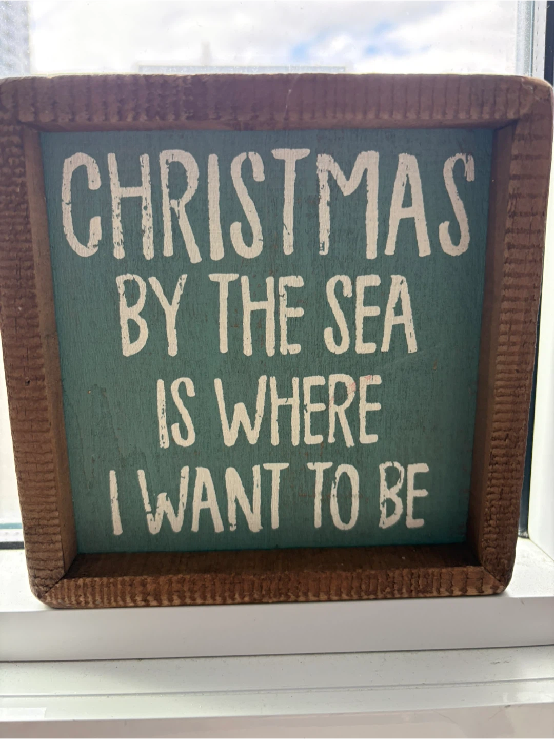 Cute sign that says "Christmas by the sea is where I want to be"! Perfect for adding a touch of festive cheer to your home!