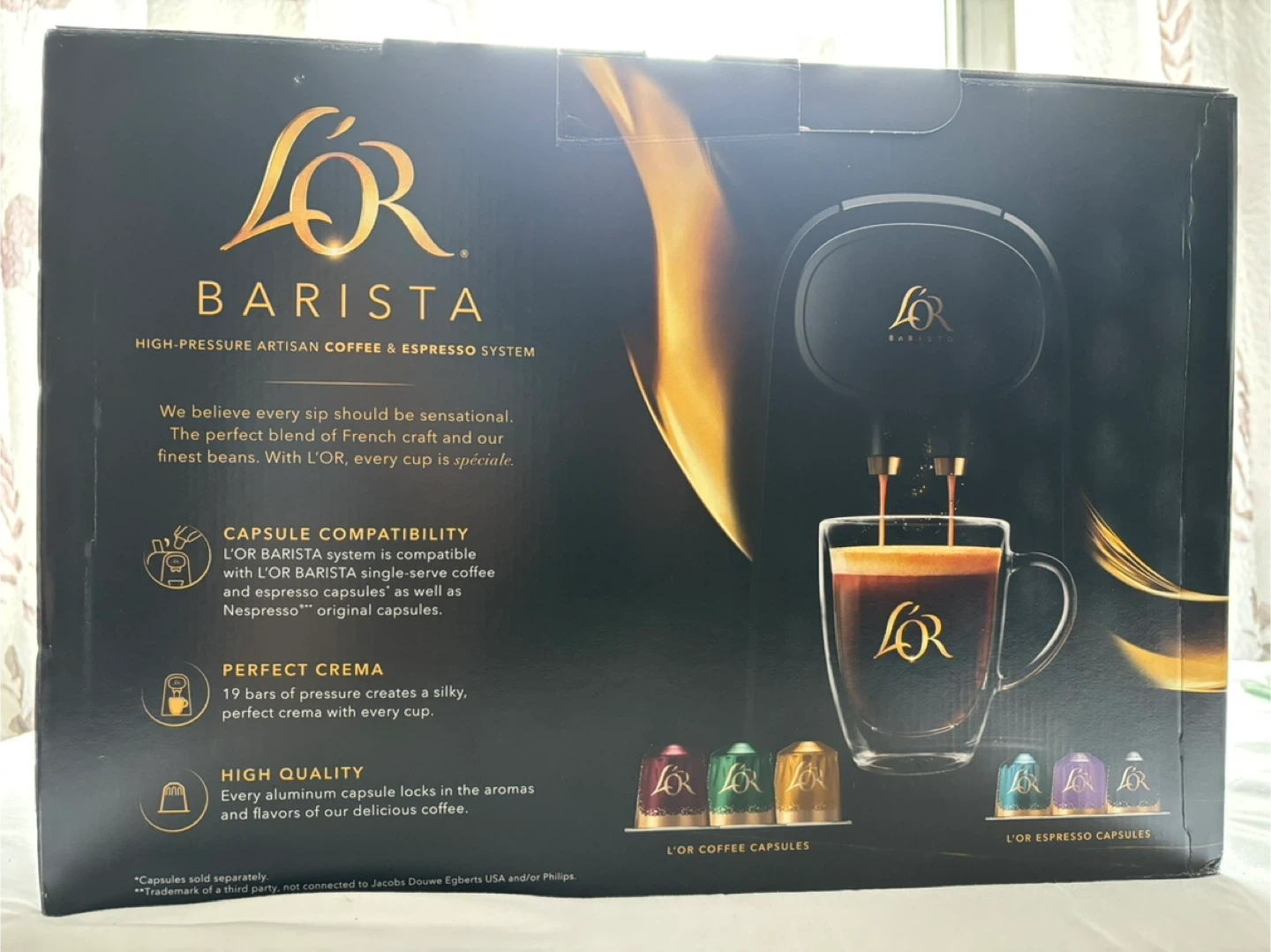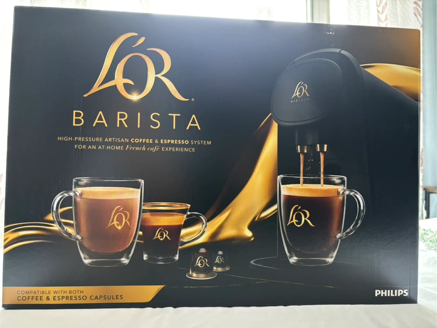 Selling a brand new L'OR Barista High-Pressure Artisan Coffee & Espresso System! The original box never opened. This system creates classic bold coffee and rich, smooth espresso. It's compatible with both L'OR Barista single-serve coffee and espresso capsules, as well as Nespresso original capsules. Enjoy perfect crema with every cup!