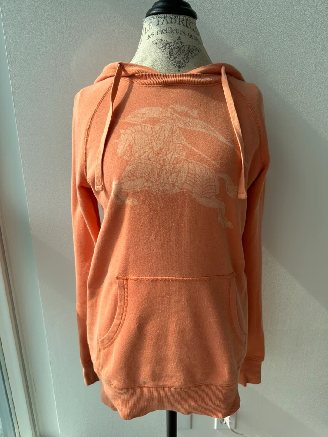 Cozy Burberry hoodie! It features the iconic Burberry equestrian knight design on the front. A great addition to your wardrobe for a touch of luxury and comfort
