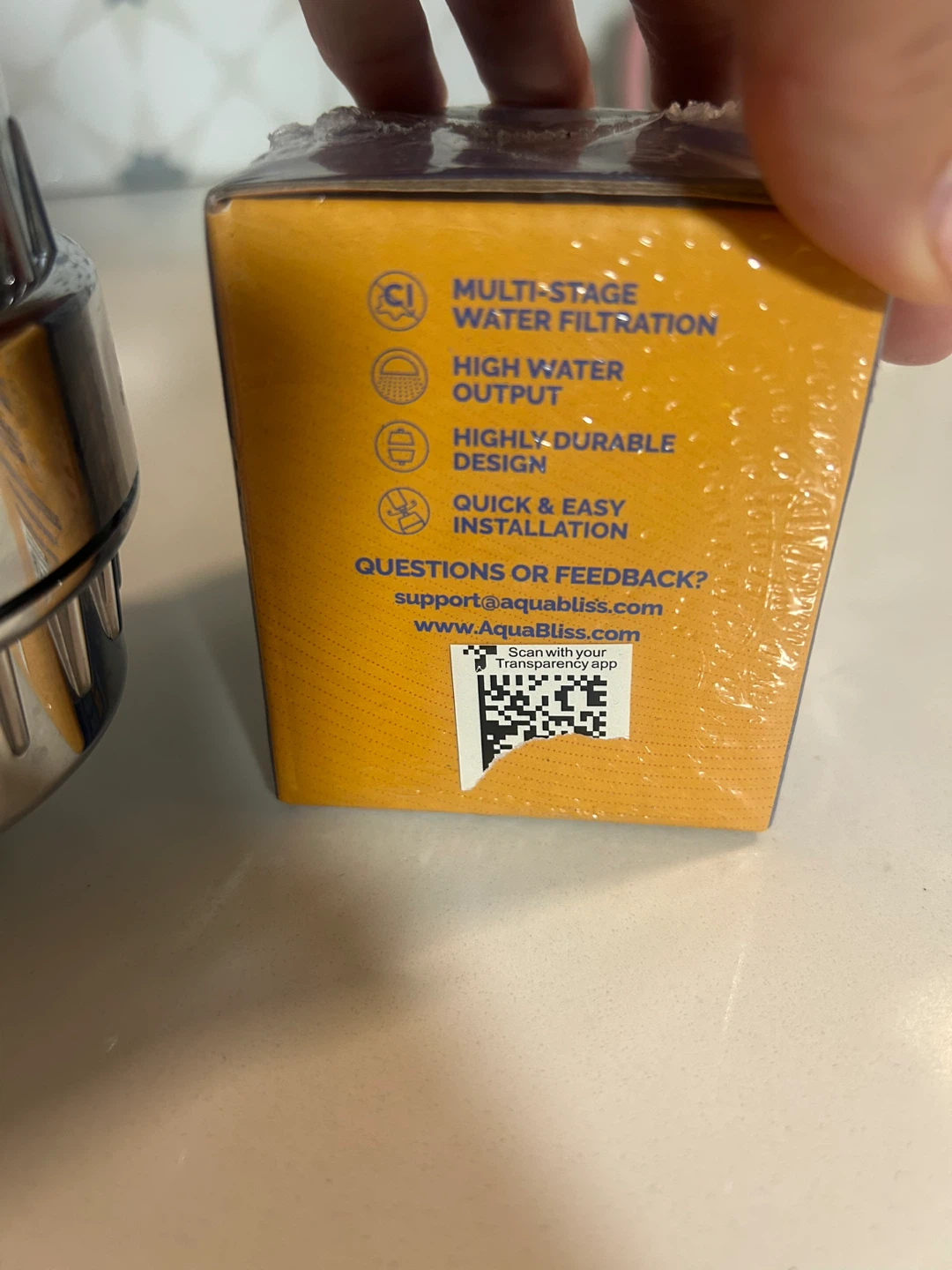 I'm selling a brand new AquaBliss SF100 shower filter replacement cartridge and shower attachment (used). This cartridge is designed for multi-stage water filtration, providing high water output and a highly durable design. Think Jolie’s system. It's also quick and easy to install. My new apartments shower head won’t fit it properly due to its angle. The cartridge contains activated carbon derived from coconut shell and contains sulfites. Works with hot and cold water, blocks chlorine, reduces skin irritation, reduces chlorine inhalation, and revitalizes showers.