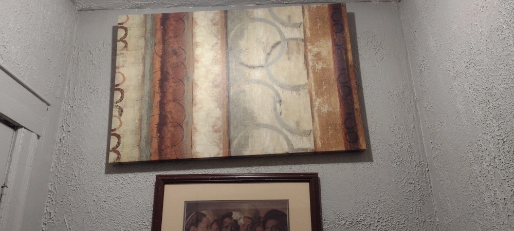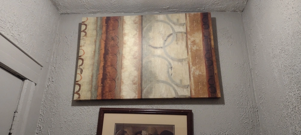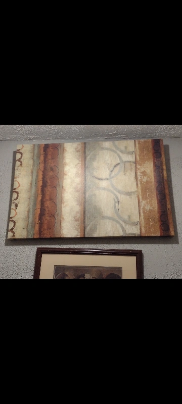 I have some wall art for sale. It's quite large and has a pattern of stripes and circles. It is in good condition...Priced to sell...