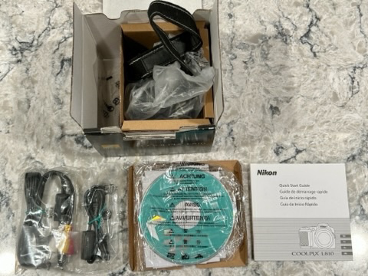 It comes with the original box and components, including the quick start guide and other accessories shown in the pictures.