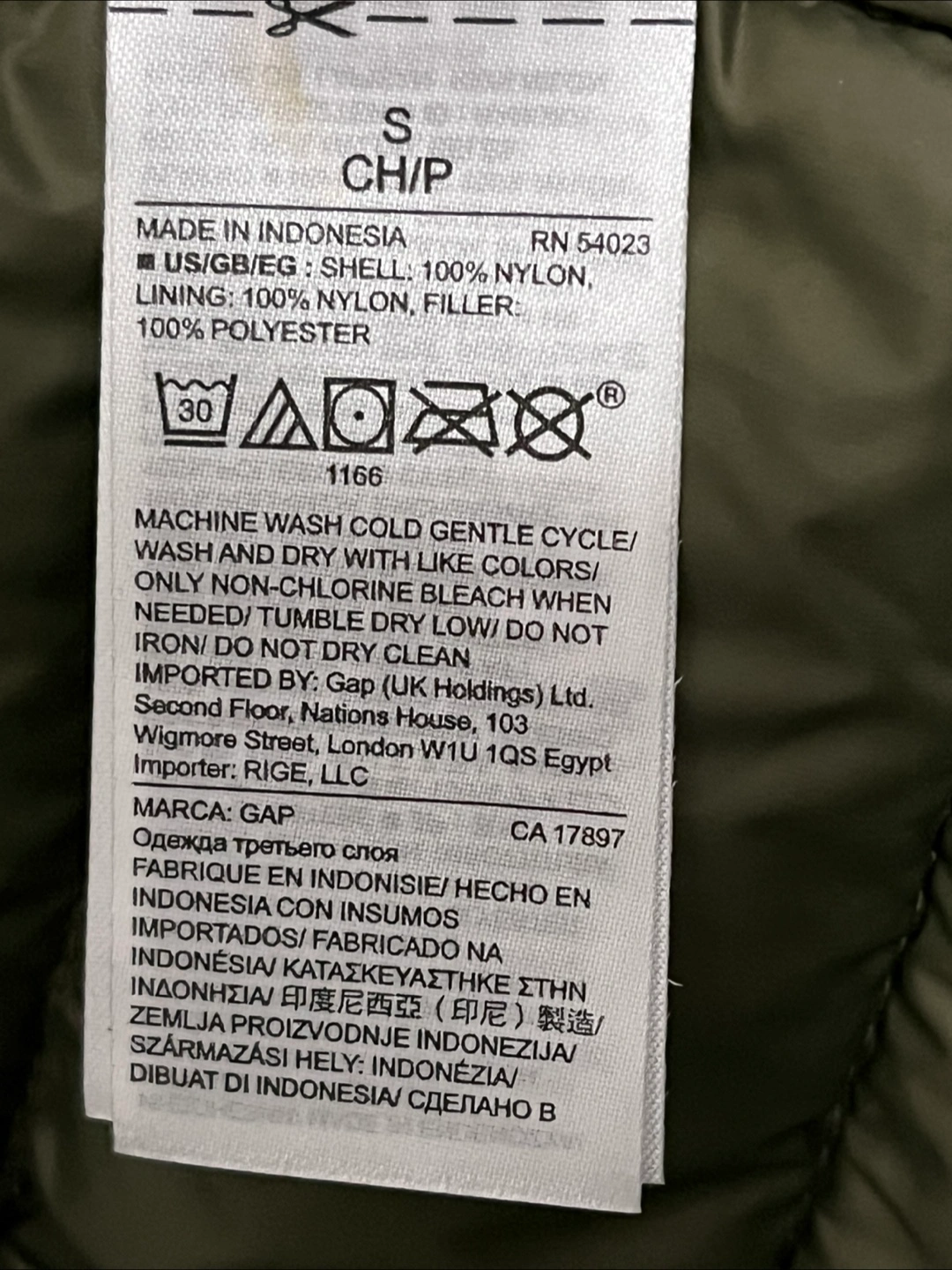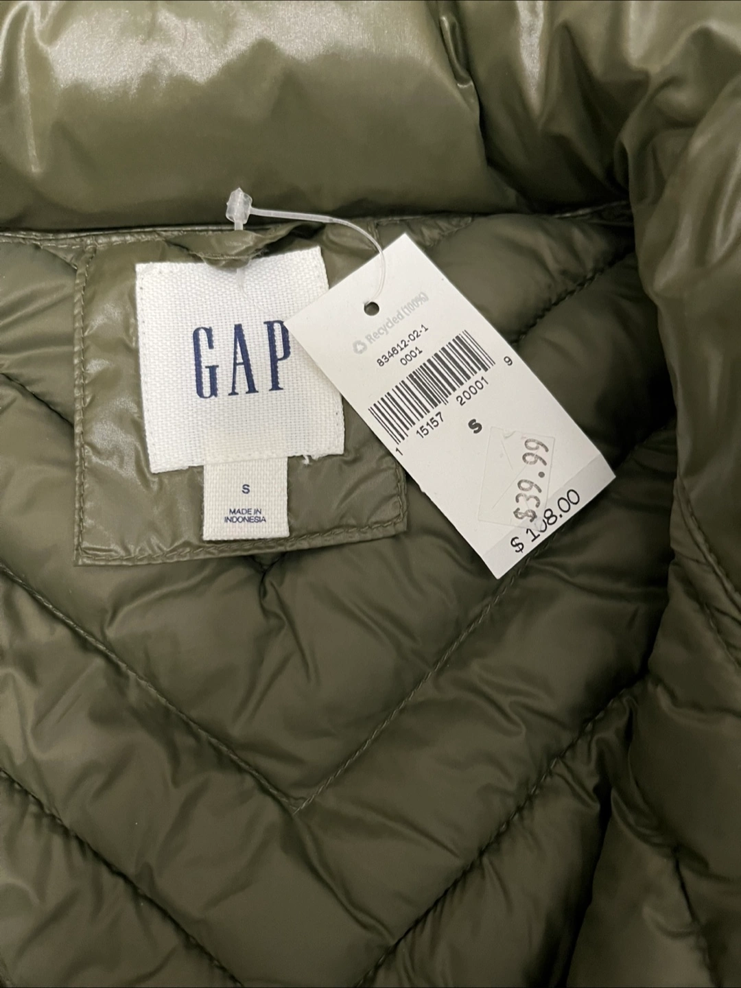 GAP Primaloft puffer jacket. Size small. Olive green with pockets! Original price was $108, bought for $ 39.99.