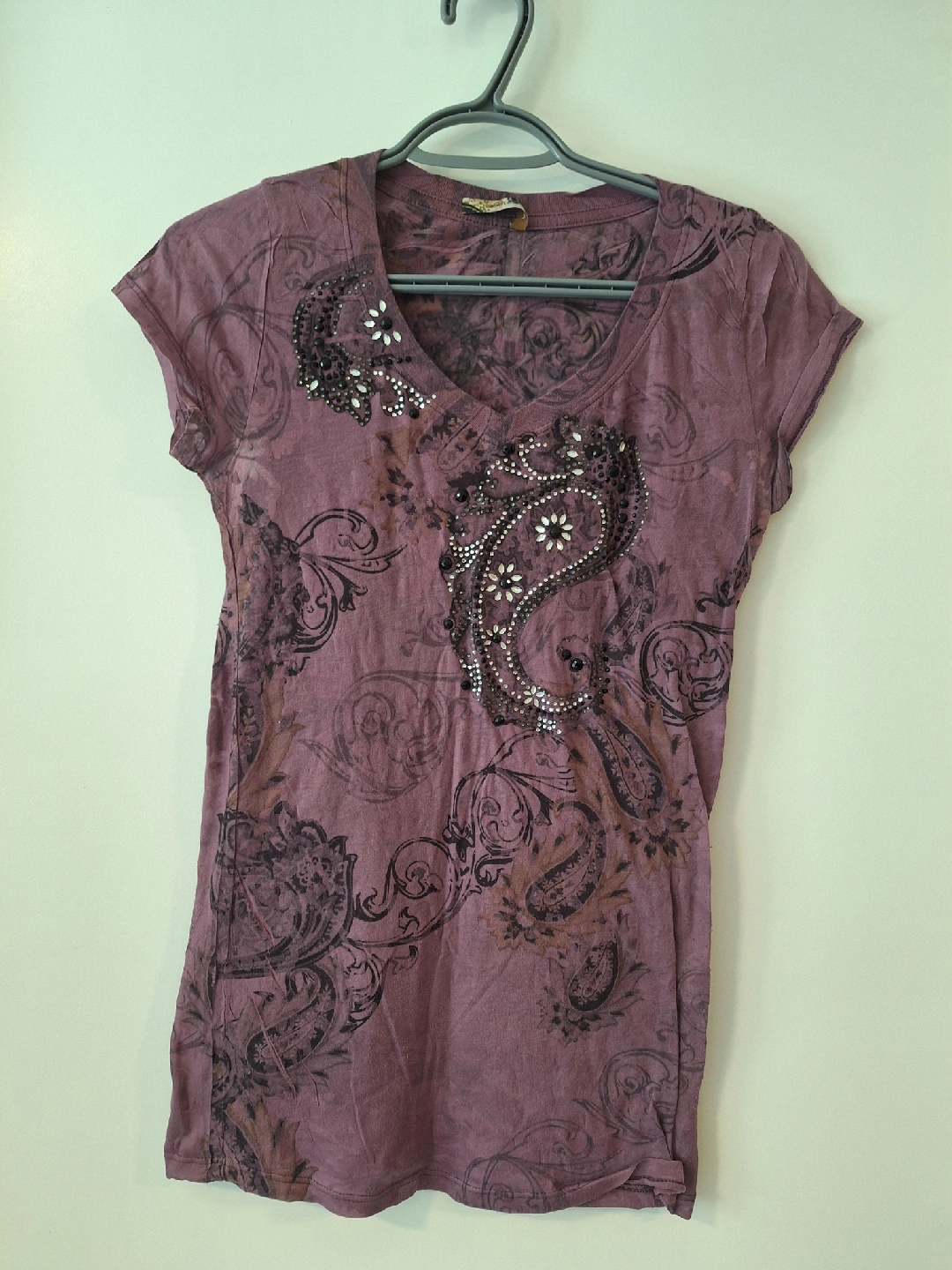 Selling a cute American Age t-shirt! It's a size medium and features a unique paisley design with some beaded accents. Perfect for adding a little flair to your wardrobe.