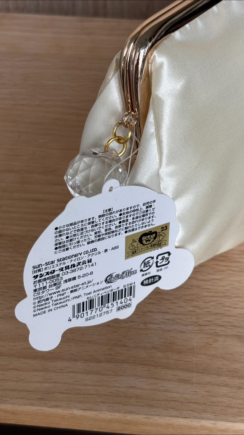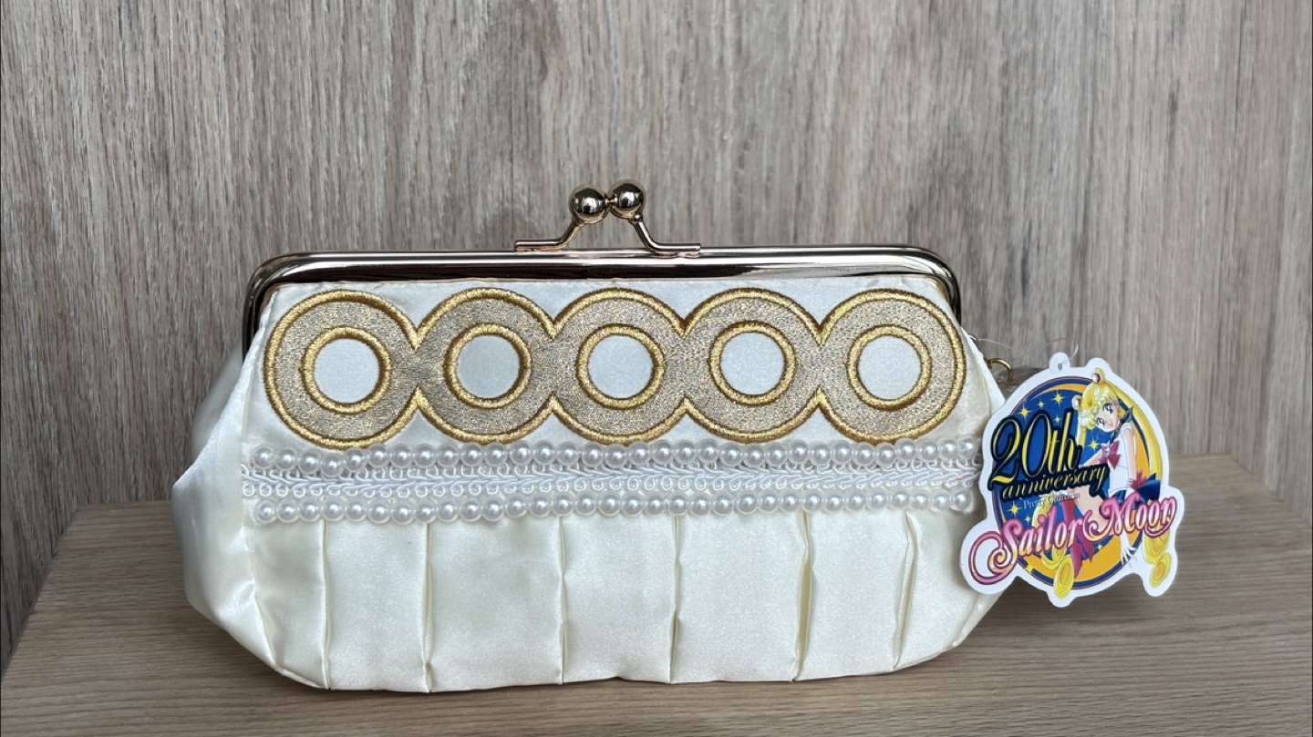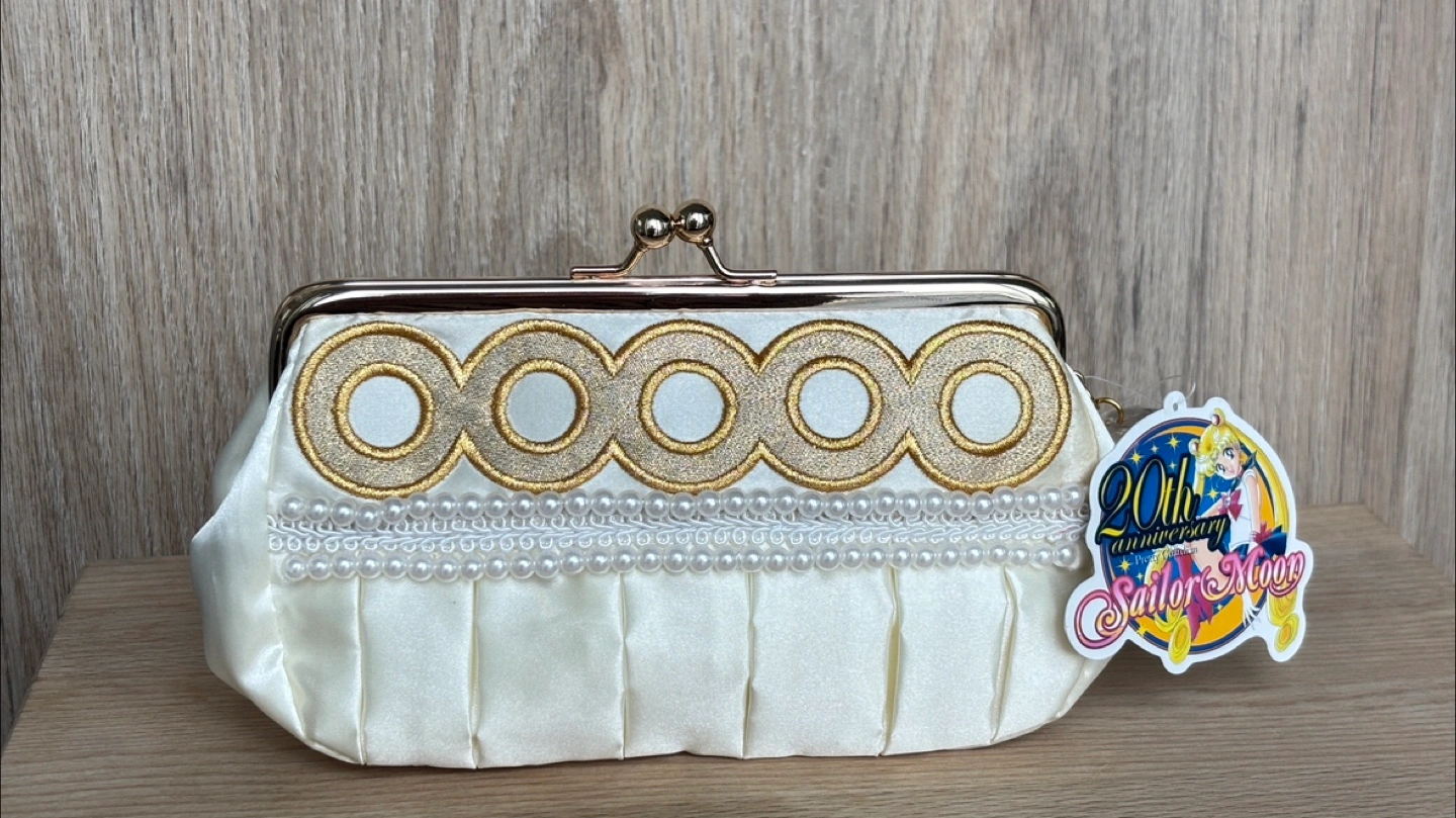 This is a brand new limited edition Sailor Moon 20th Anniversary pencil case / clutch bag! It's a beautiful, elegant design, perfect for any Sailor Moon fan. The bag is white with gold accents and pearl detailing. It has a clasp closure and is fully lined. It's made by Sun-Star Stationery co.