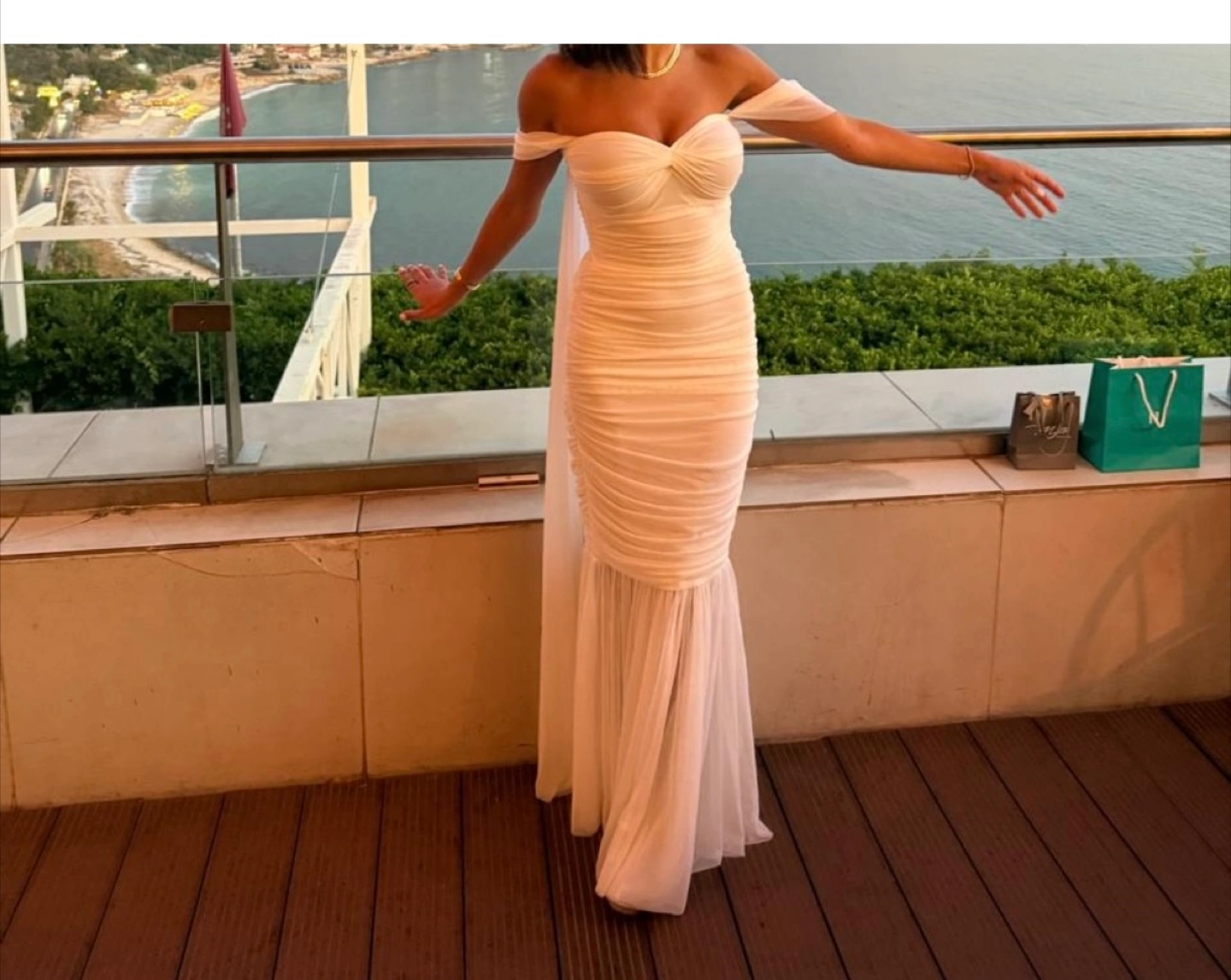 Selling a Norma Kamali Walter Fishtail Gown in Snow White! This stunning gown is a best seller and originally retailed for $595. It's perfect for a special occasion!