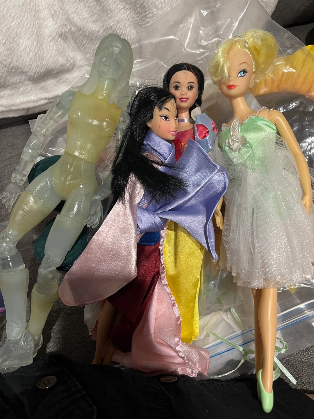 Selling a collection of Disney Princess dolls. Includes Mulan, Snow White, and Tinkerbell - $15 for the 4. Including Fantastic Four Sue Storm from original movie.