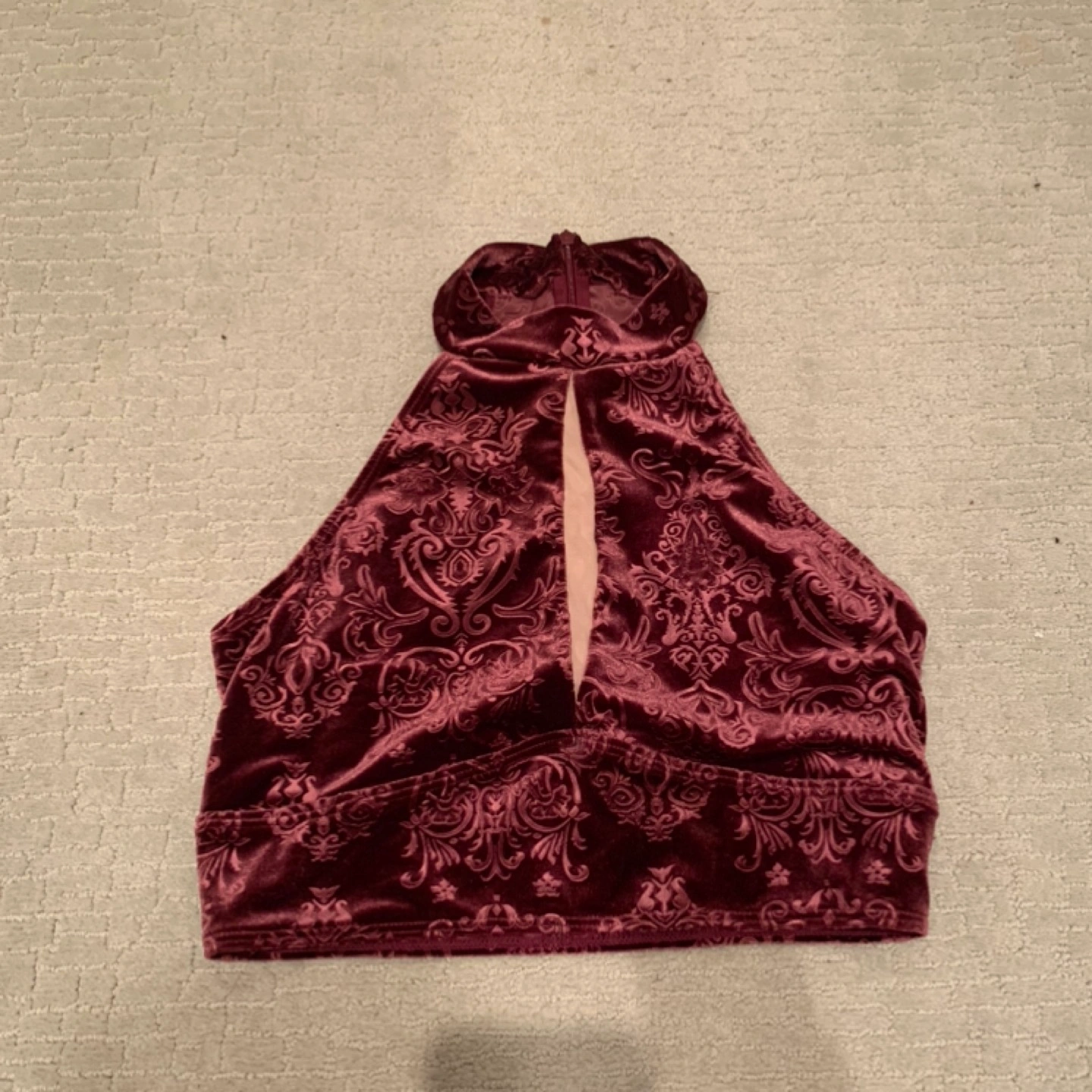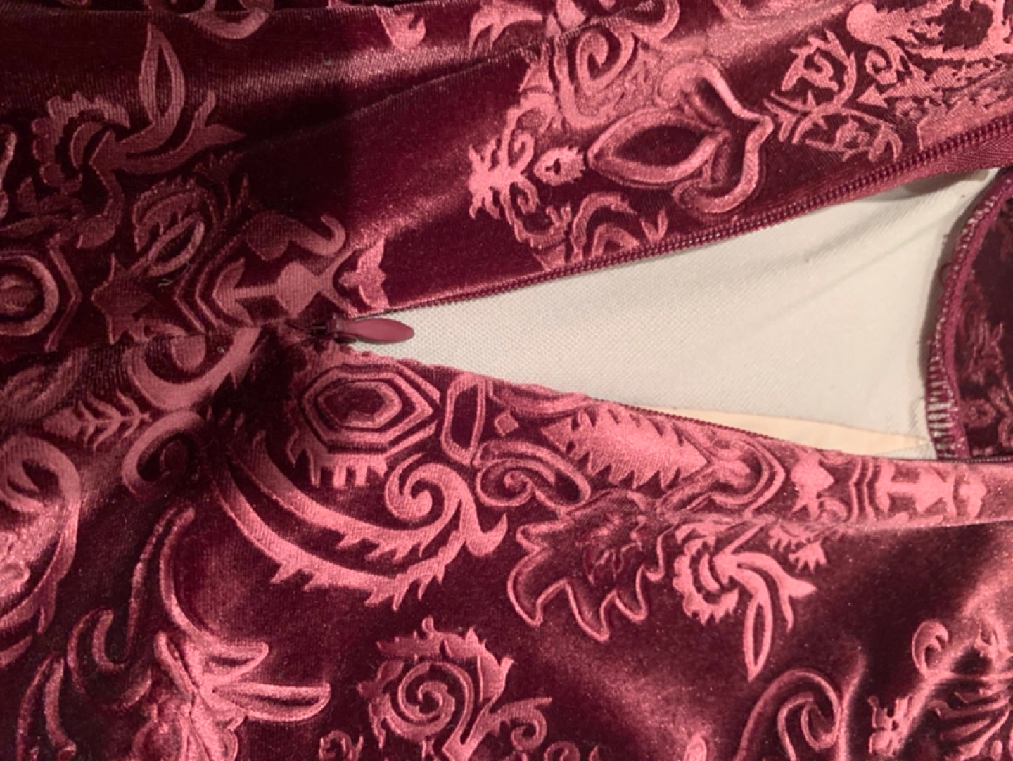 Size s/m, includes zipper in the back. I think it would look really nice with some fancy black pants 👍