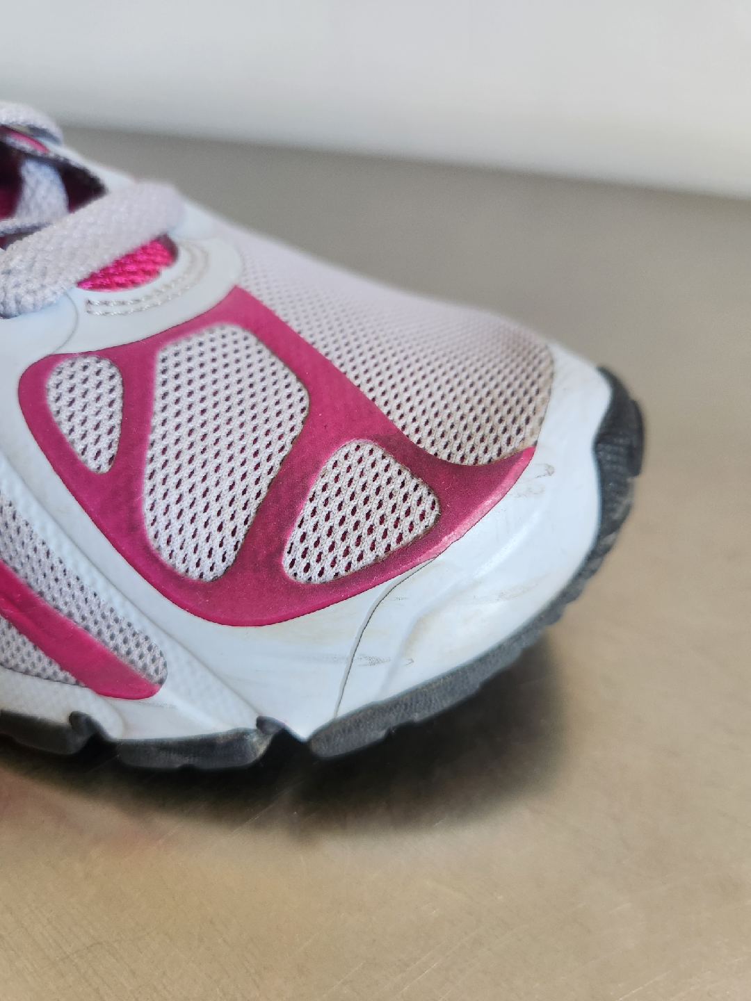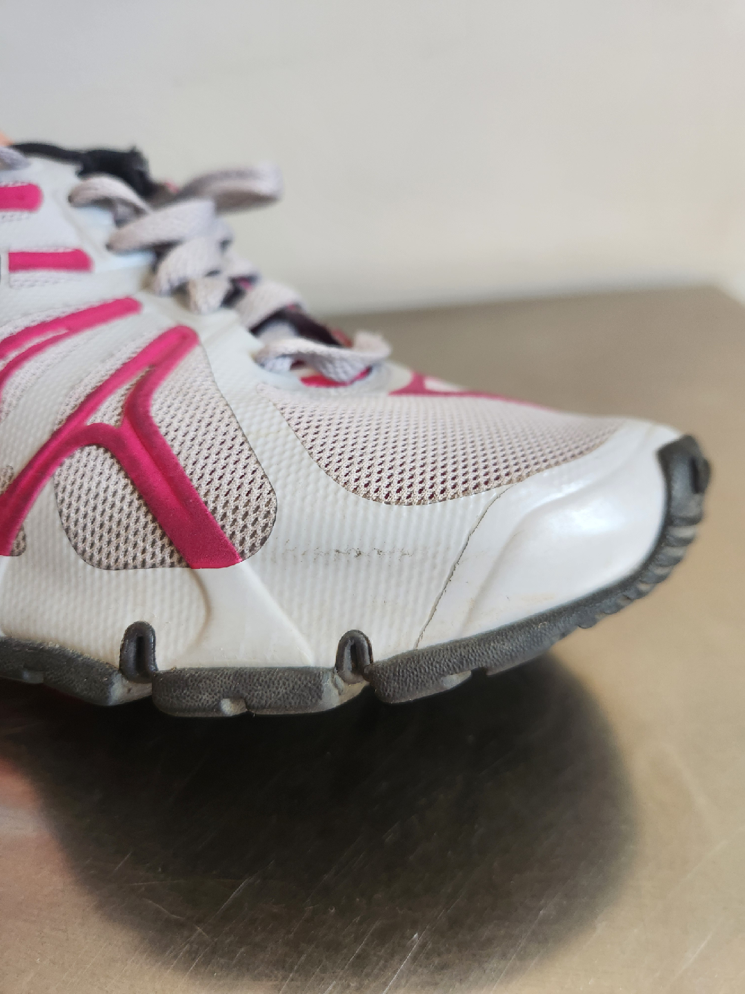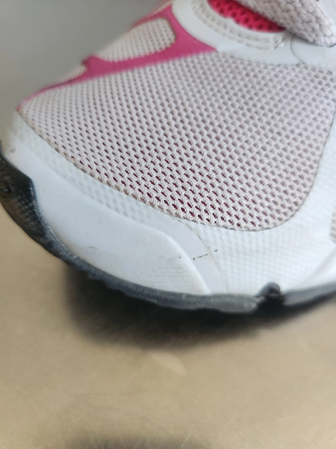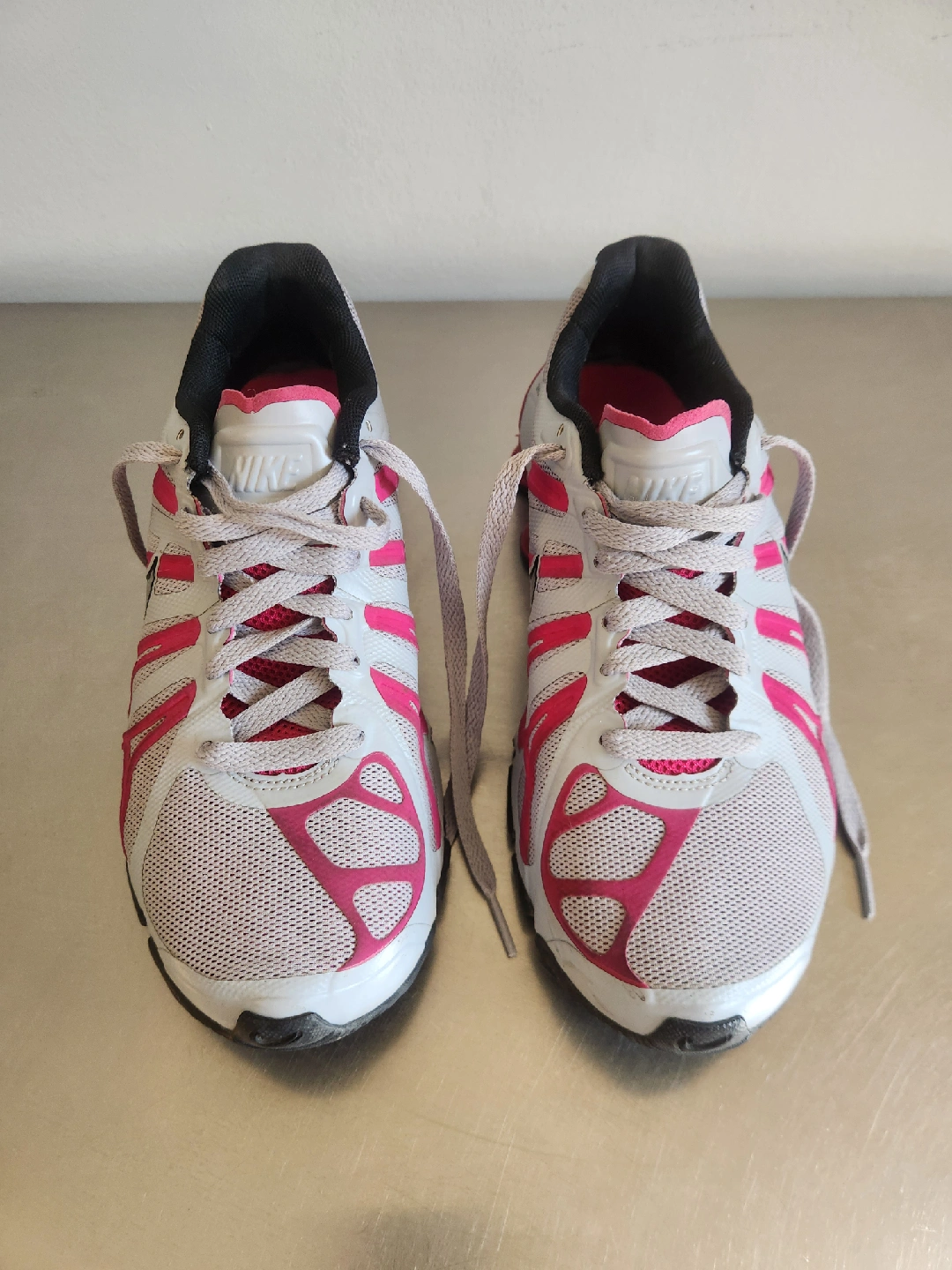 Selling a pair of Nike Shox Turbo 13 7.5 women's running shoes. They show some signs of wear, particularly on the soles, but are still in good condition for running or casual wear. The shoes feature a white and pink colour scheme with the classic Nike swoosh. Please check the photos for a closer look!