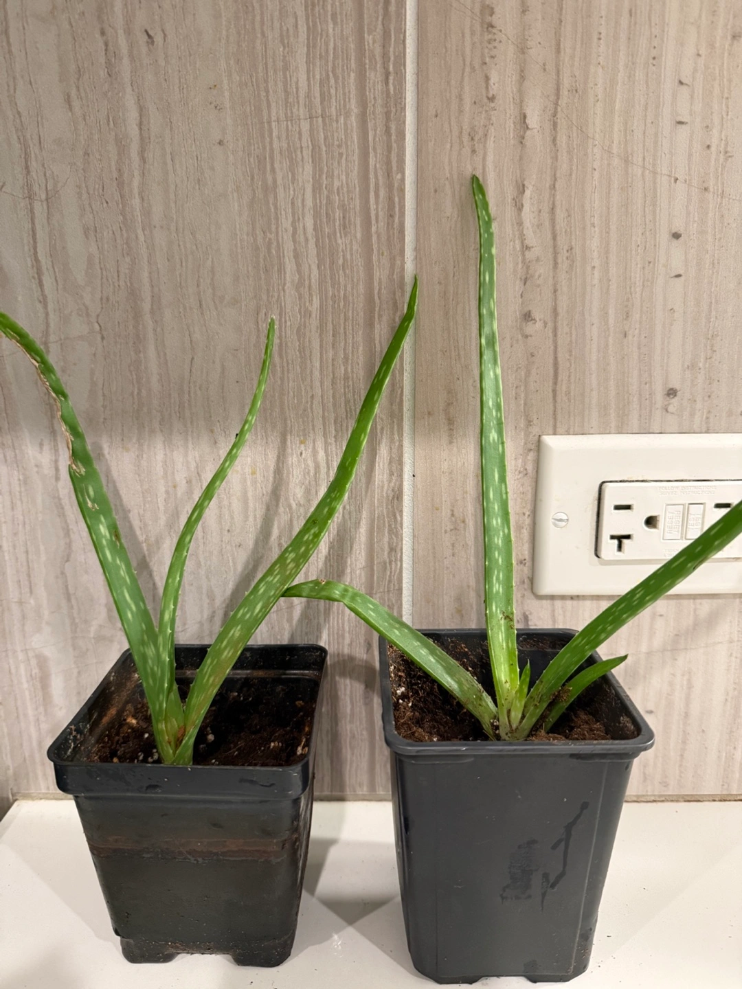 I'm selling two aloe vera plants. They are in black plastic pots and ready to go to a new home! 1 for $5