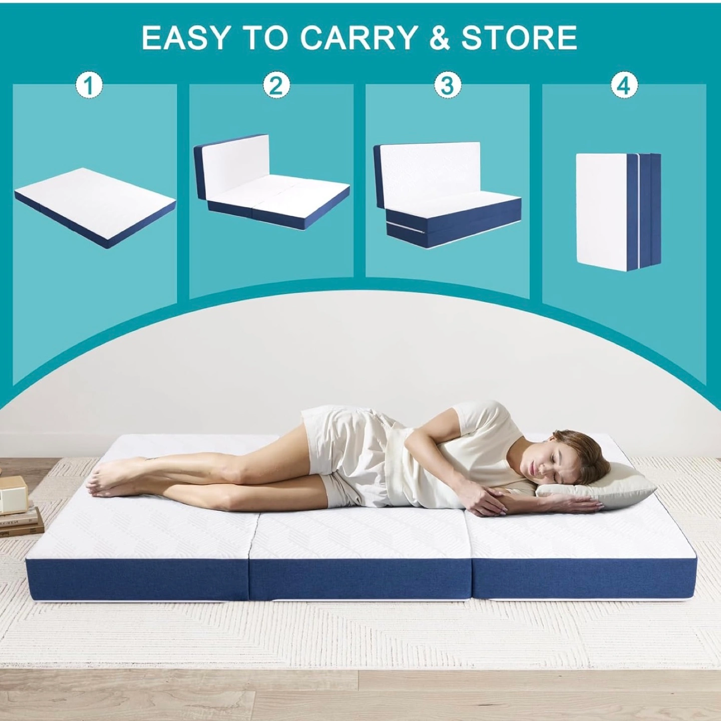Full Folding Mattress – 4” Tri-Fold Memory Foam, Washable Cover