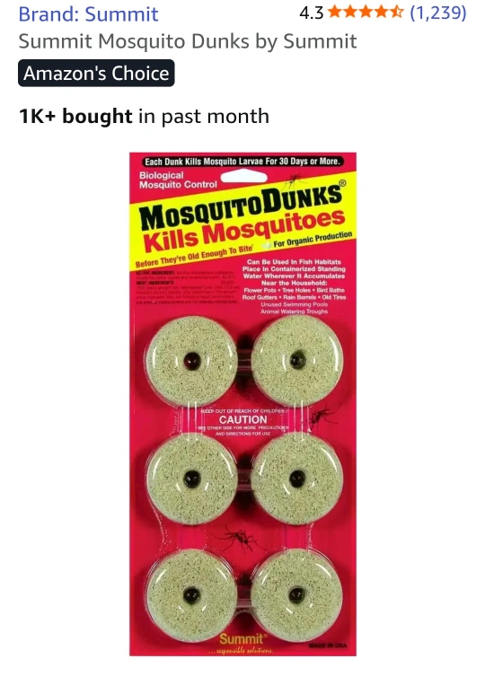 I have new 9 pieces of Mosquito Dunks in a glass jar.