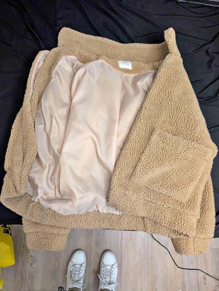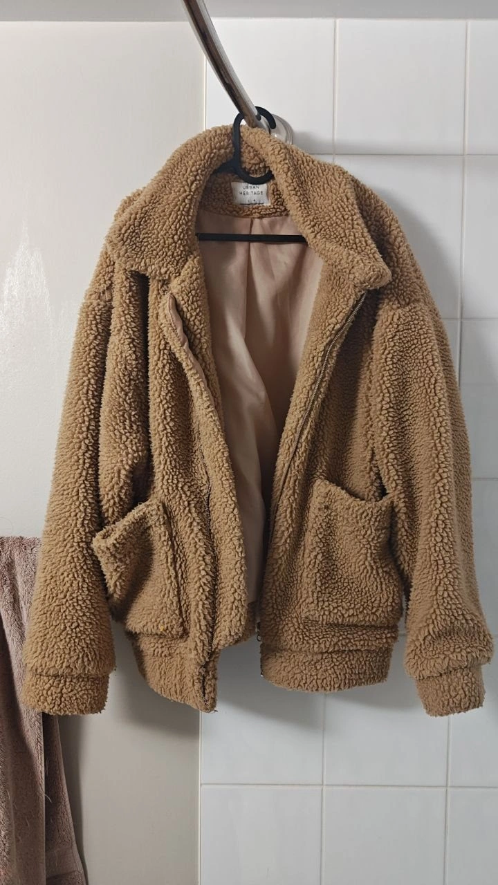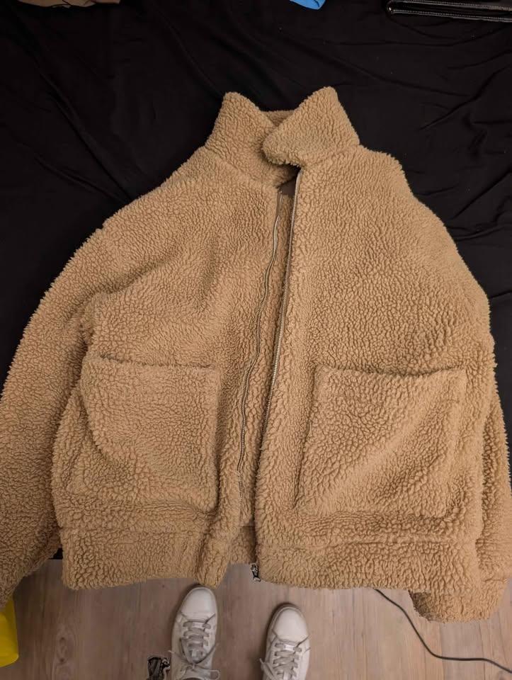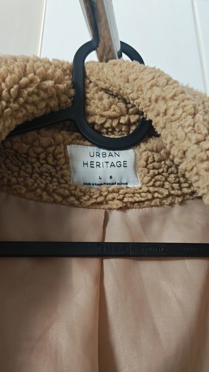 Cozy tan Sherpa teddy jacket from Urban Heritage. Size L with an oversized fit — works great for both men and women. Warm, casual, and easy to layer for fall/winter. Basically new, only worn once to try on.