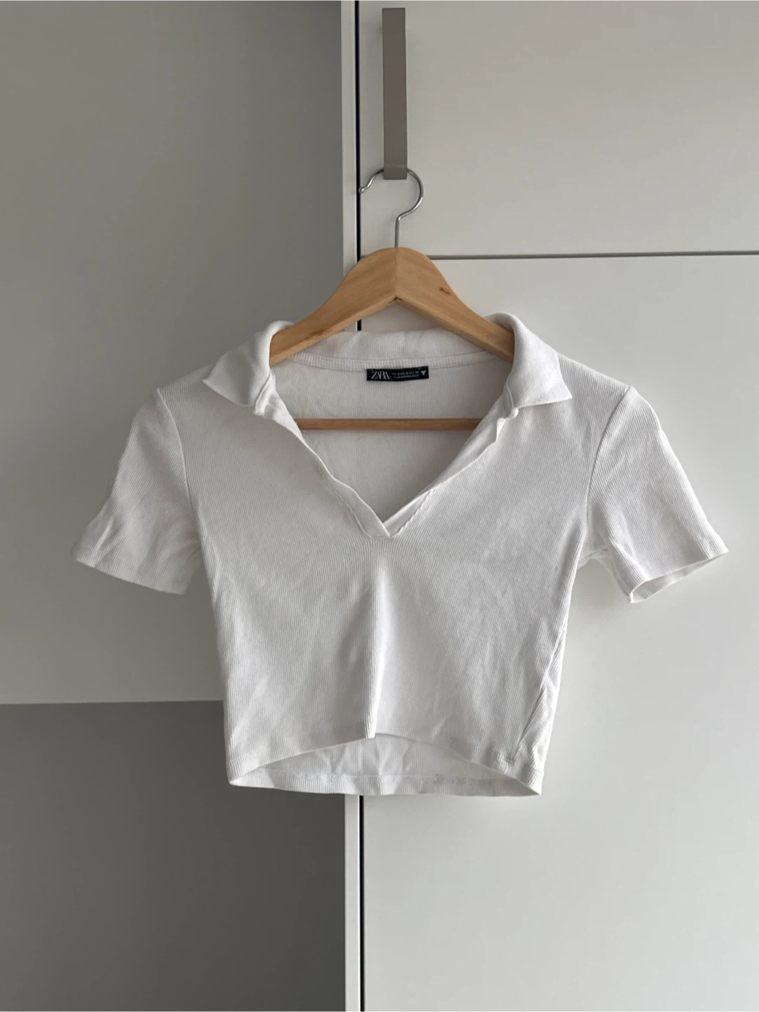 ๐ค Zara White Ribbed Polo Crop Top - Size S