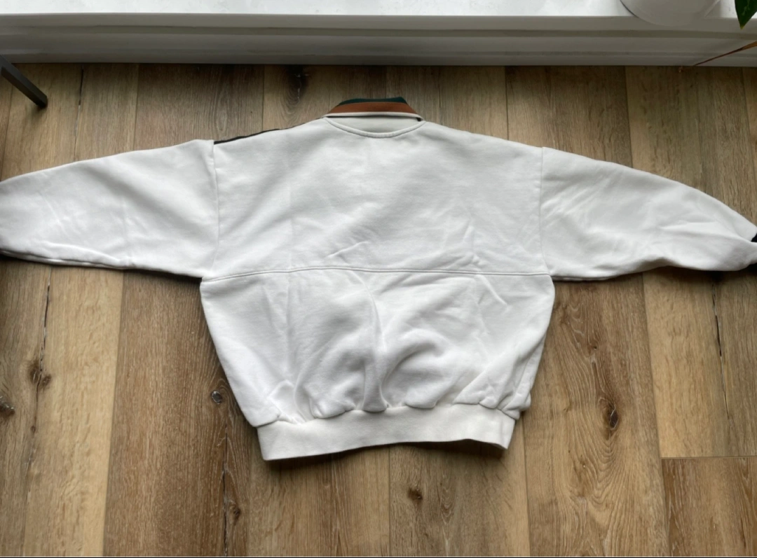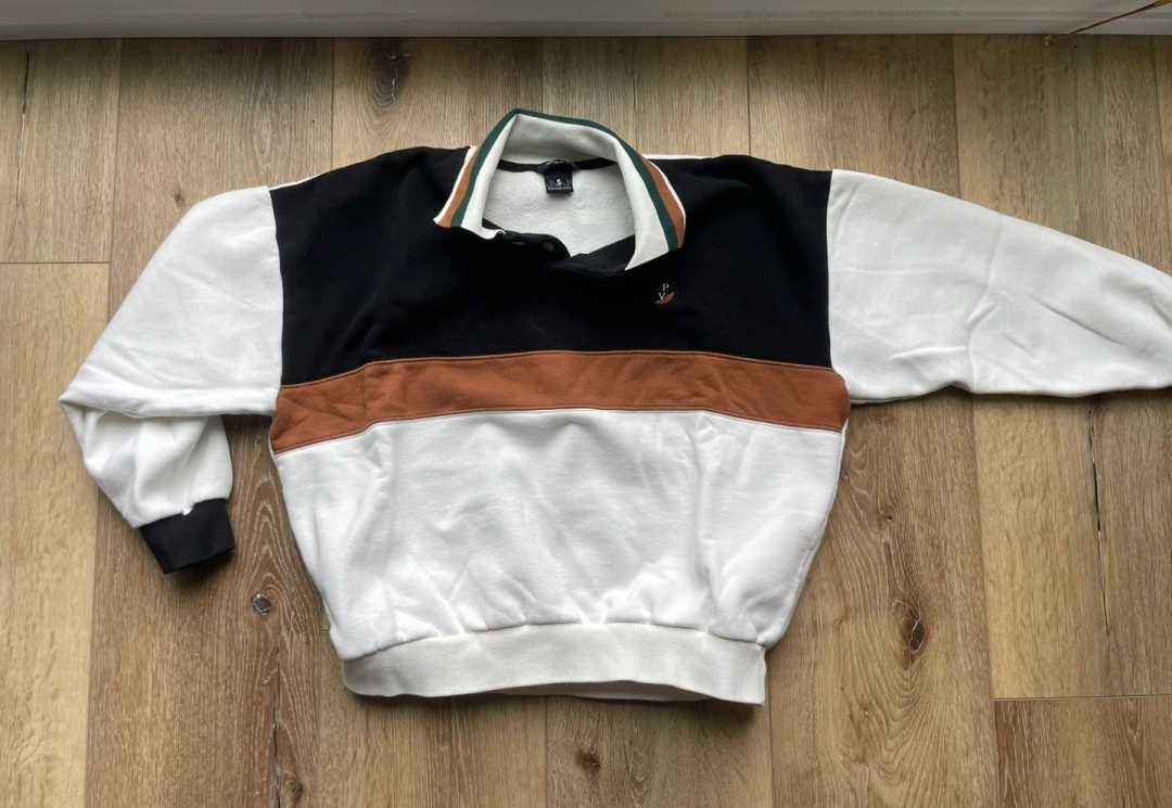 1000+Cozy WU PROJECT pullover in size small. It's white with black and brown accents. Great for layering or wearing on its own!