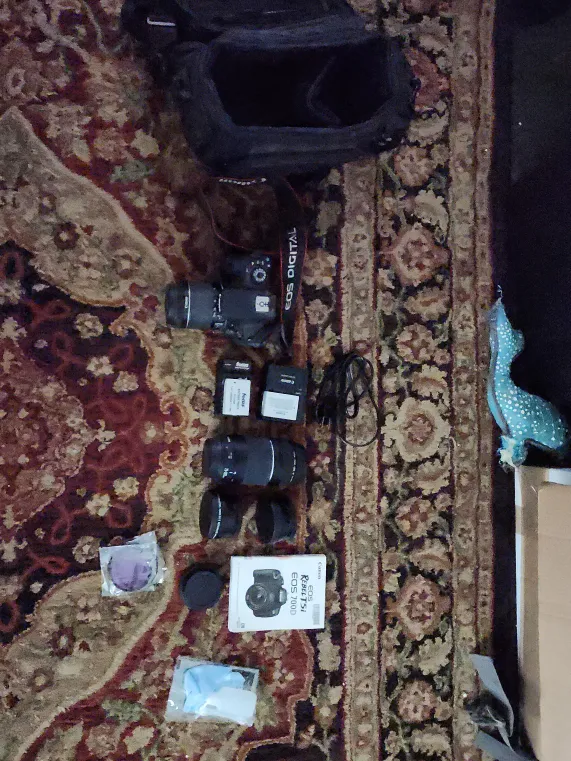 Selling a Canon EOS T5i camera with multiple lenses and accessories! Includes an EF-S 18-55mm lens, a 75-300mm lens, and additional wide angle and telephoto lenses. Also comes with batteries, charger, and the original instruction manual. Great setup for anyone getting into photography!