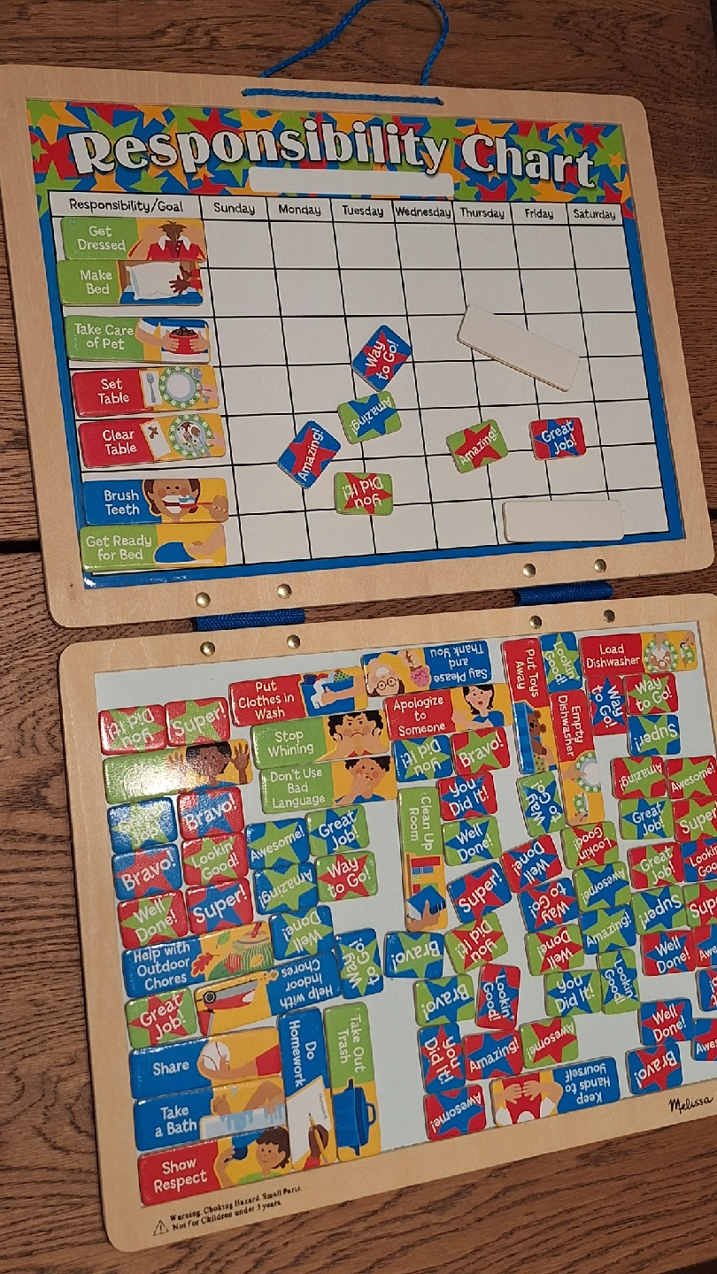 This Melissa & Doug Responsibility Chart is a great way to help kids learn about daily routines and chores! It comes with lots of fun and colourful magnets to track progress and reward good behaviour