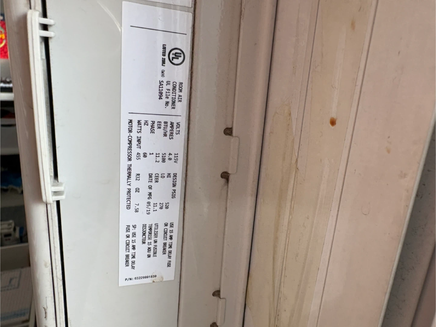 Selling a GE window air conditioner. It's in used condition and has some cosmetic wear, as shown in the photos. It requires a 15 amp time delay fuse or circuit breaker. It operates at 115V. Please take a look at the photos for more details!
