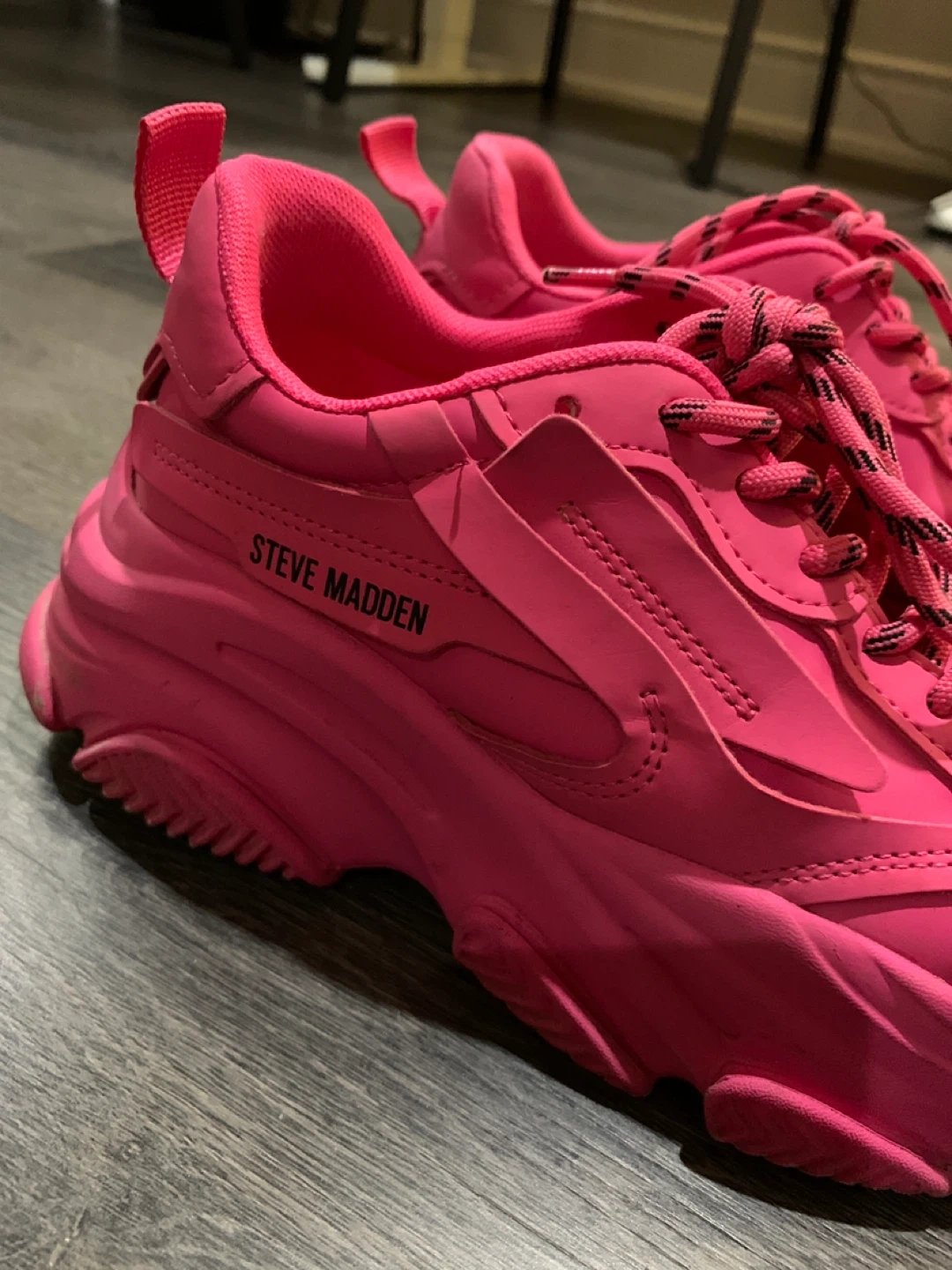 Hot pink Steve Madden sneakers in great condition! These shoes are super stylish and comfortable. Perfect for adding a pop of colour to any outfit