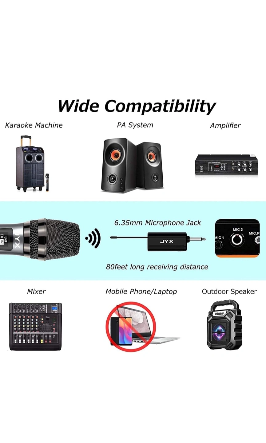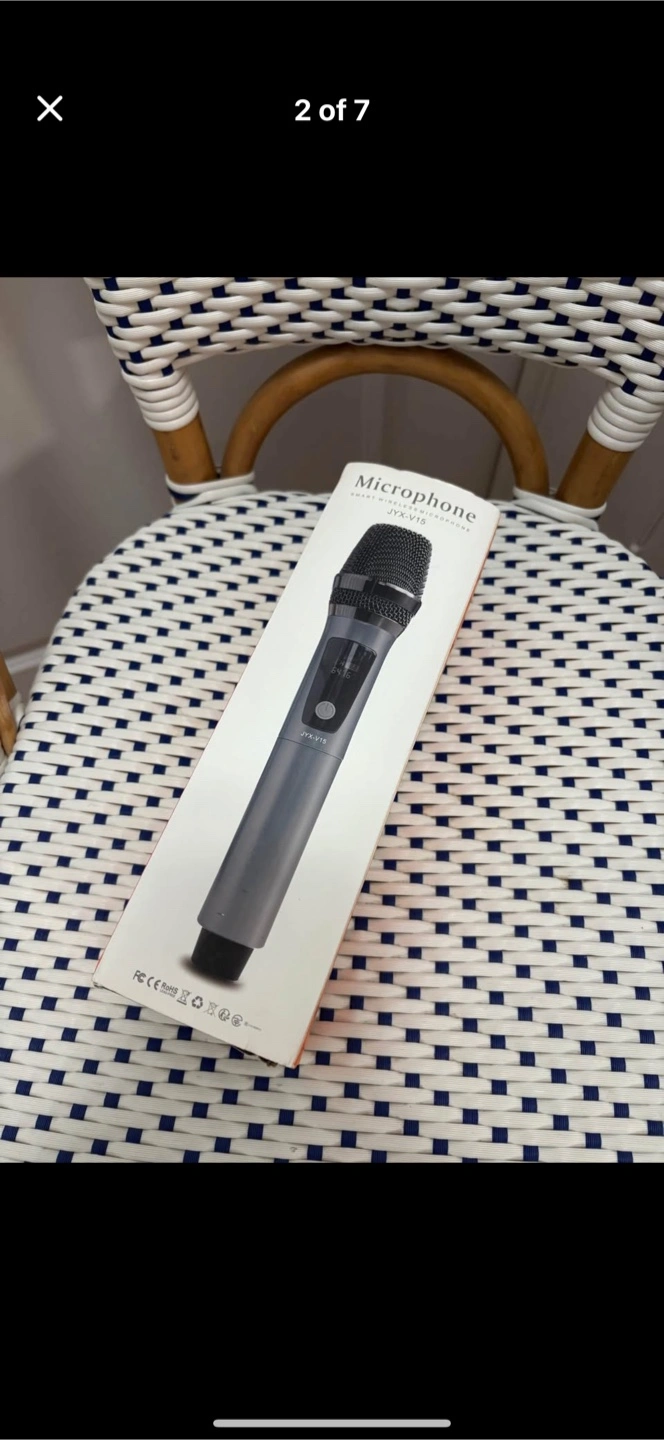 Selling a JYX-V15 microphone that's in excellent condition. It comes with all the original accessories and the box! This microphone has a 2200mAh capacity, providing up to 10 hours of playing time. Perfect for karaoke or any event!